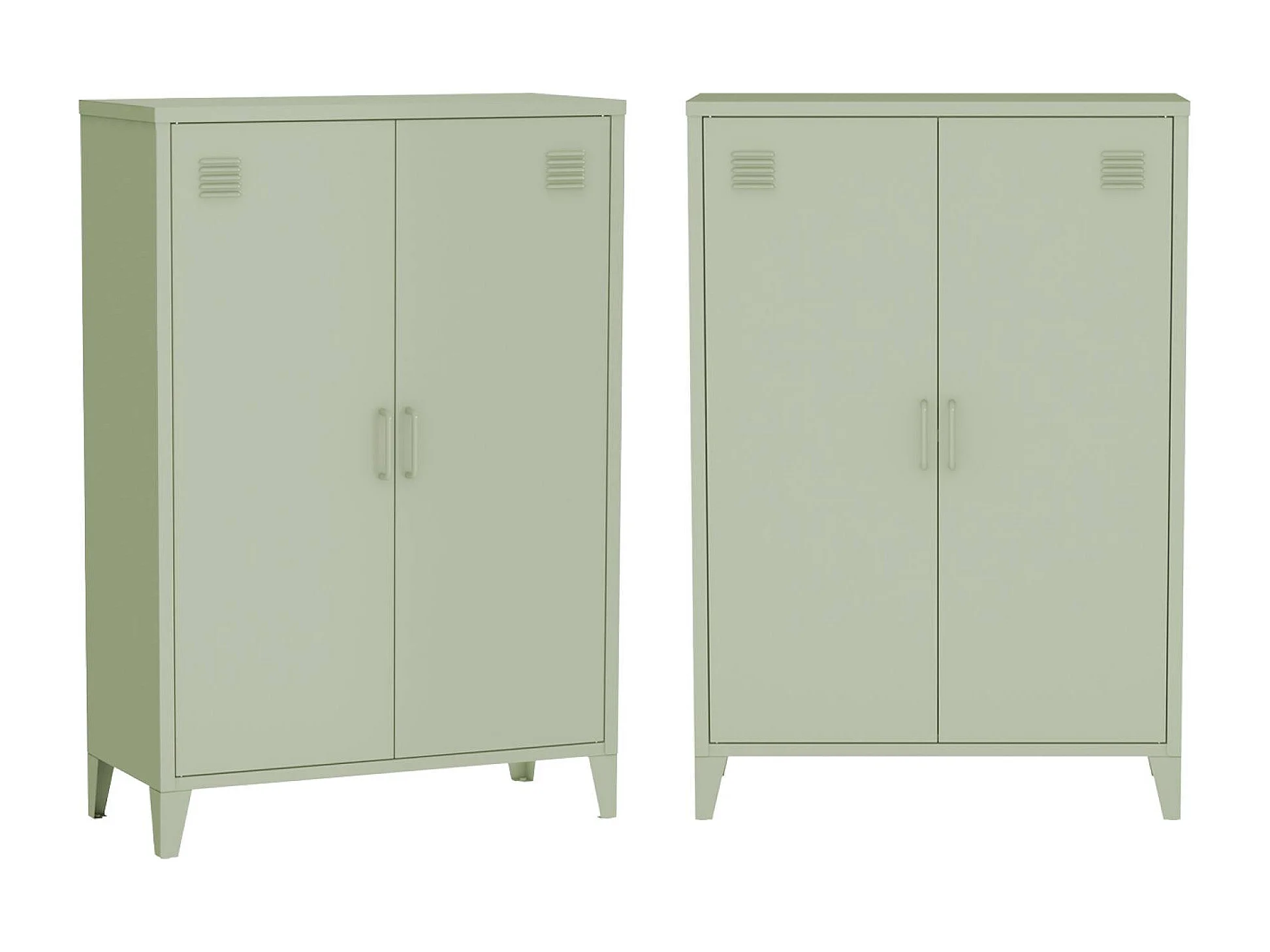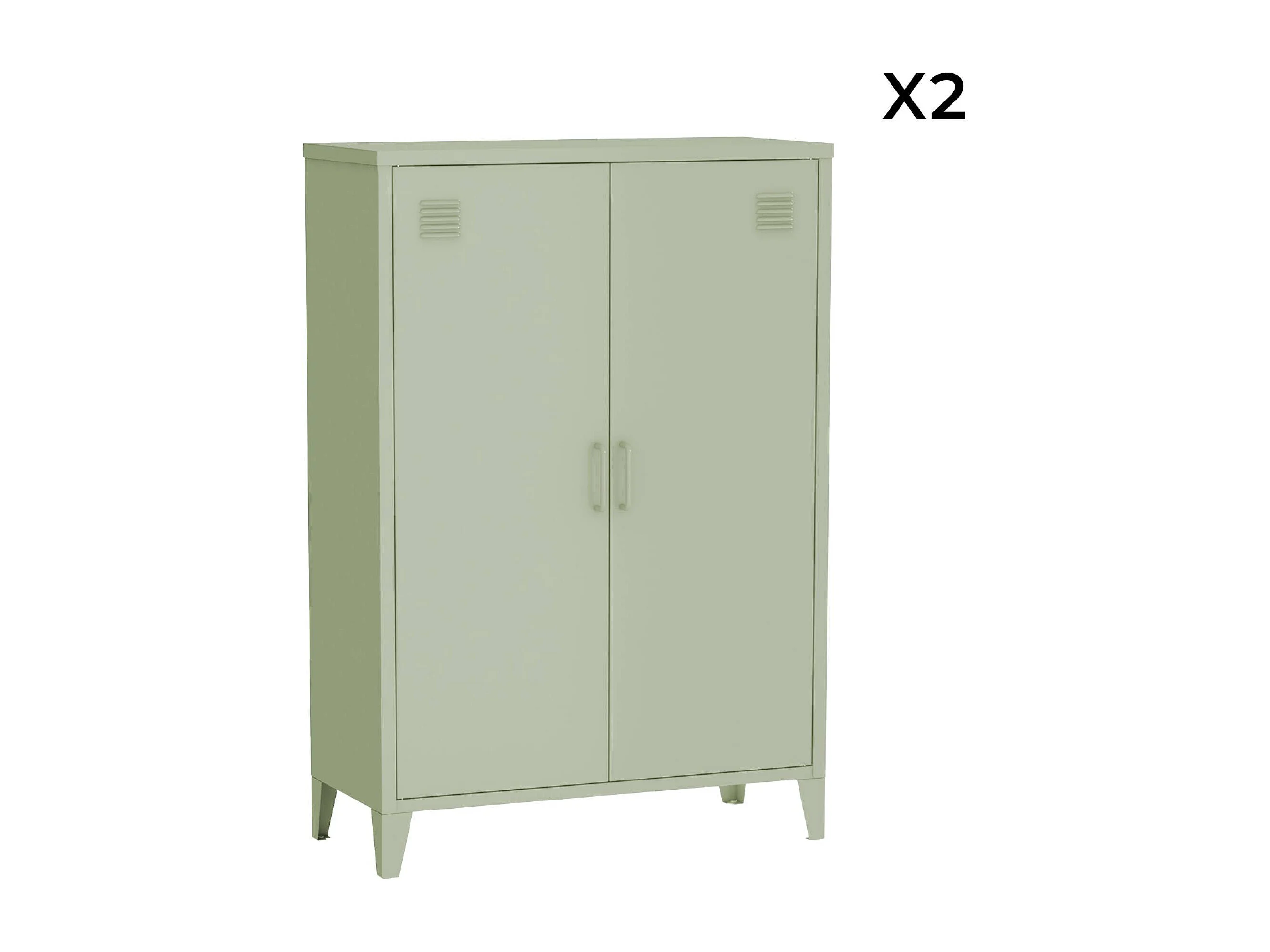 Lot de 2 commodes/armoires métal 2 portes Soho vert. casiers. L 75 x P 33 x H 110 cm