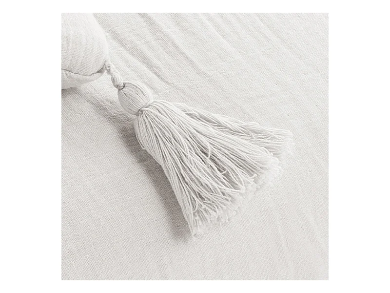 Lot de 2 coussins 40x40 double gaze de coton blanc avec pompons - PEPA