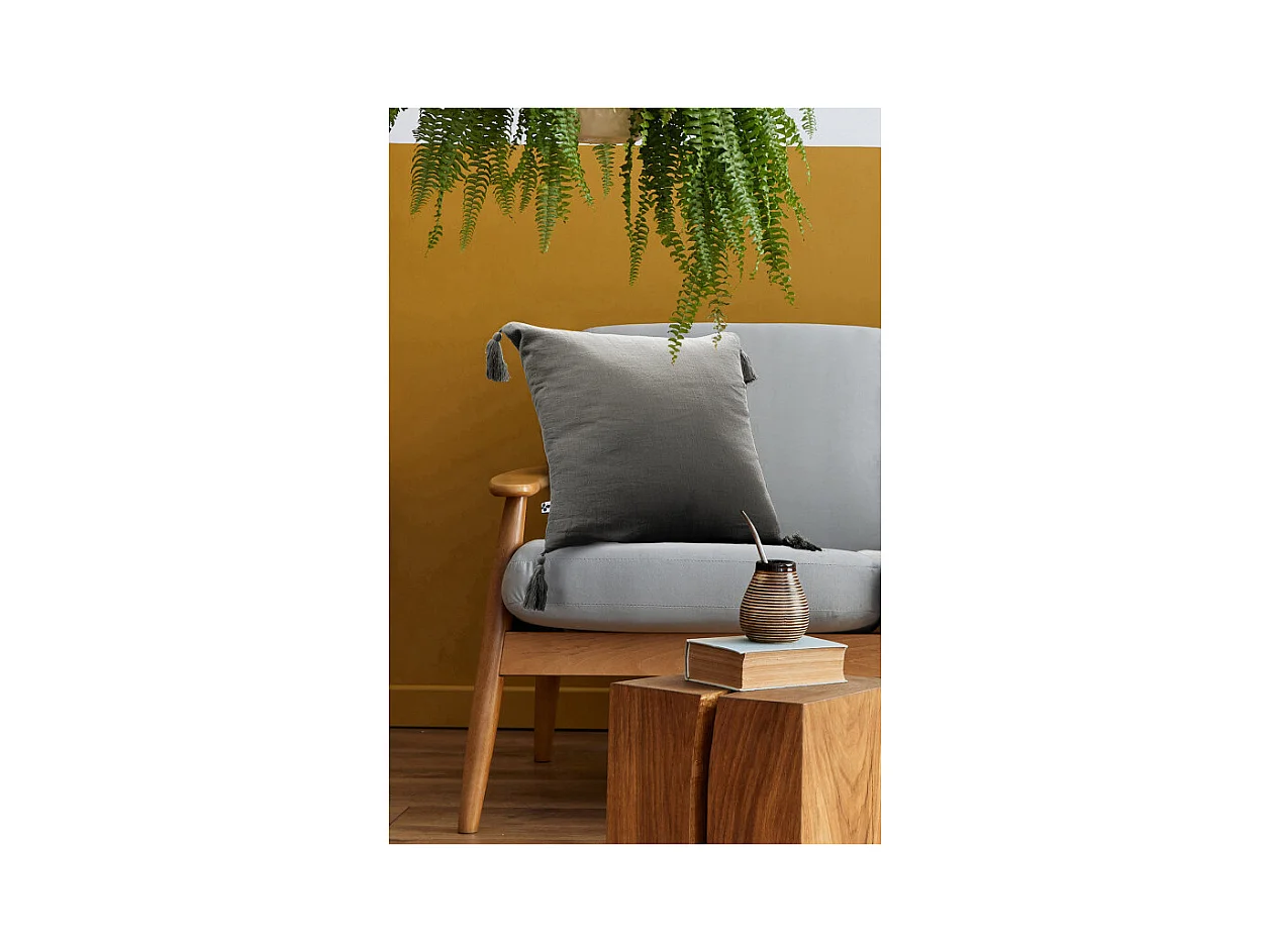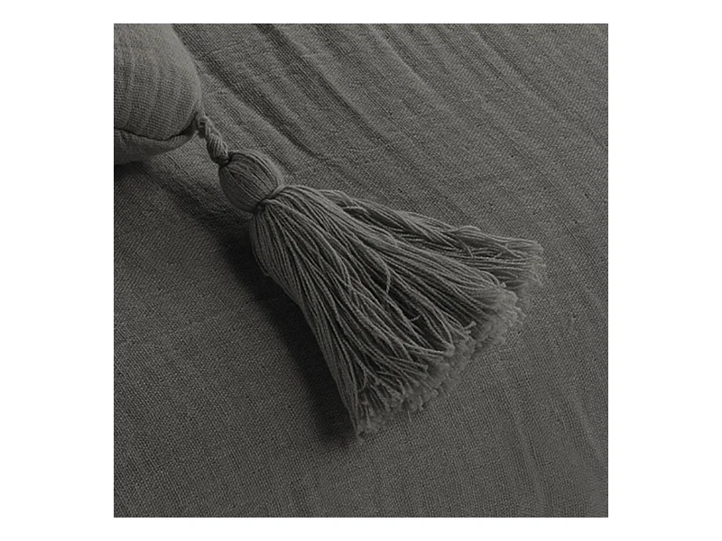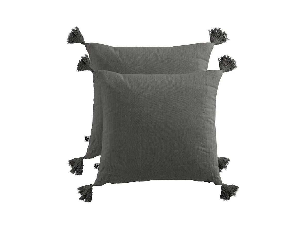 Lot de 2 coussins 40x40 double gaze de coton gris avec pompons - PEPA