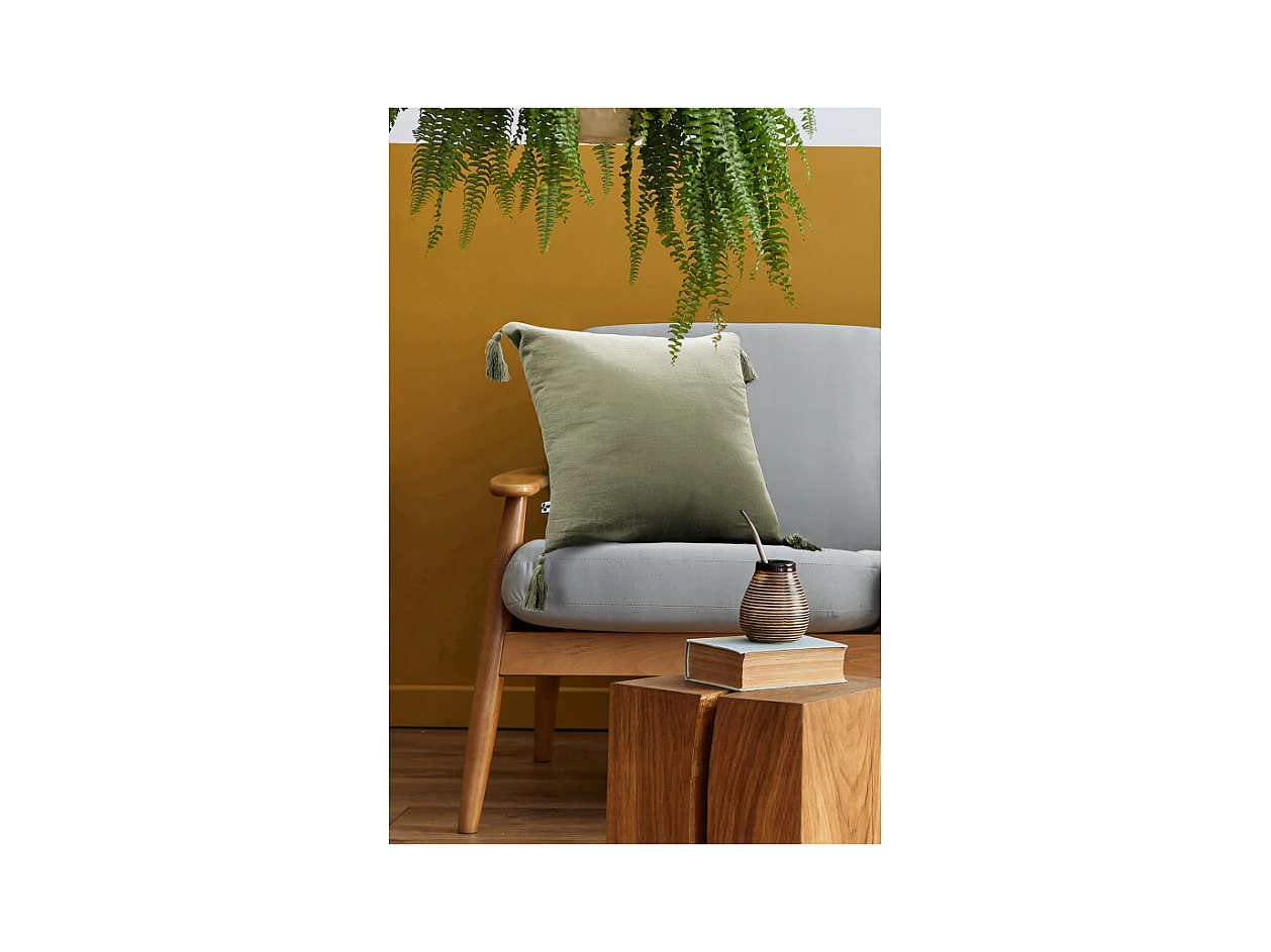 Coussin en coton lavé 40x40 cm SPIRIT kaki, par Soleil d'Ocre