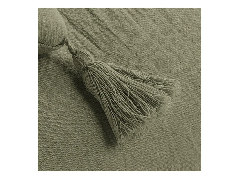 Lot de 2 coussins 40x40 double gaze de coton vert avec pompons - PEPA