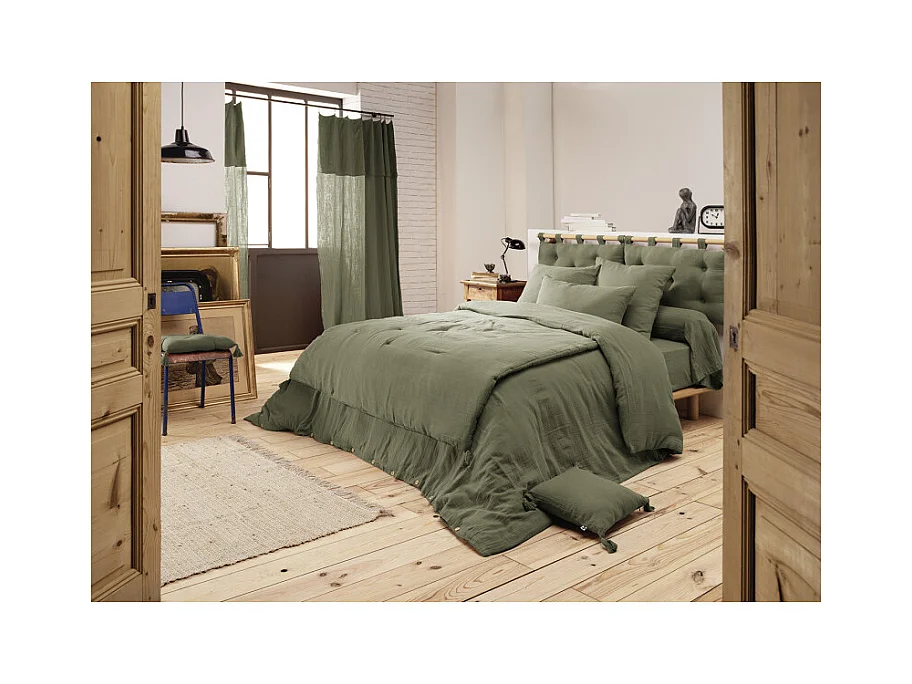 OUREA - Chemin de Lit 90x200cm Capitonné Gaze de Coton Pampa