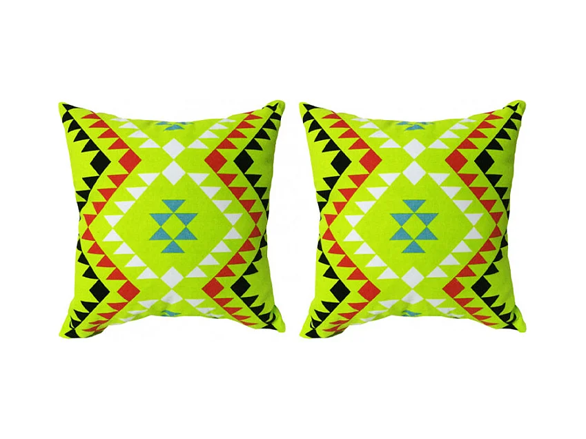 Lot de 2 coussins carrés au motif tribal vert 45 x 45 cm - TRIBE