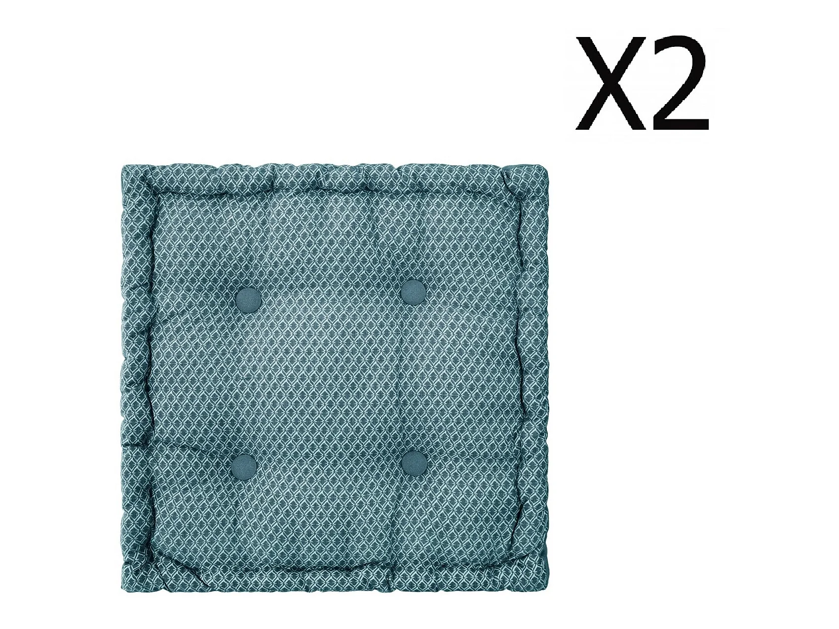 Lot de 2 Coussins de sol bleu canard - L. 40 x l. 40 x H. 8 cm