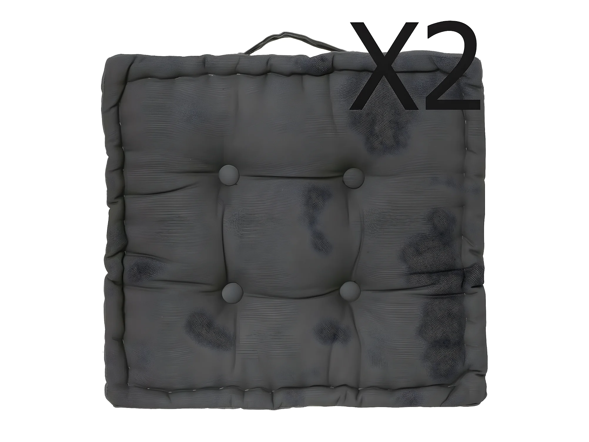Lot de 2 Coussins de sol en coton très tendance, Coloris Gris Foncé , 40 x 40 x H8 cm