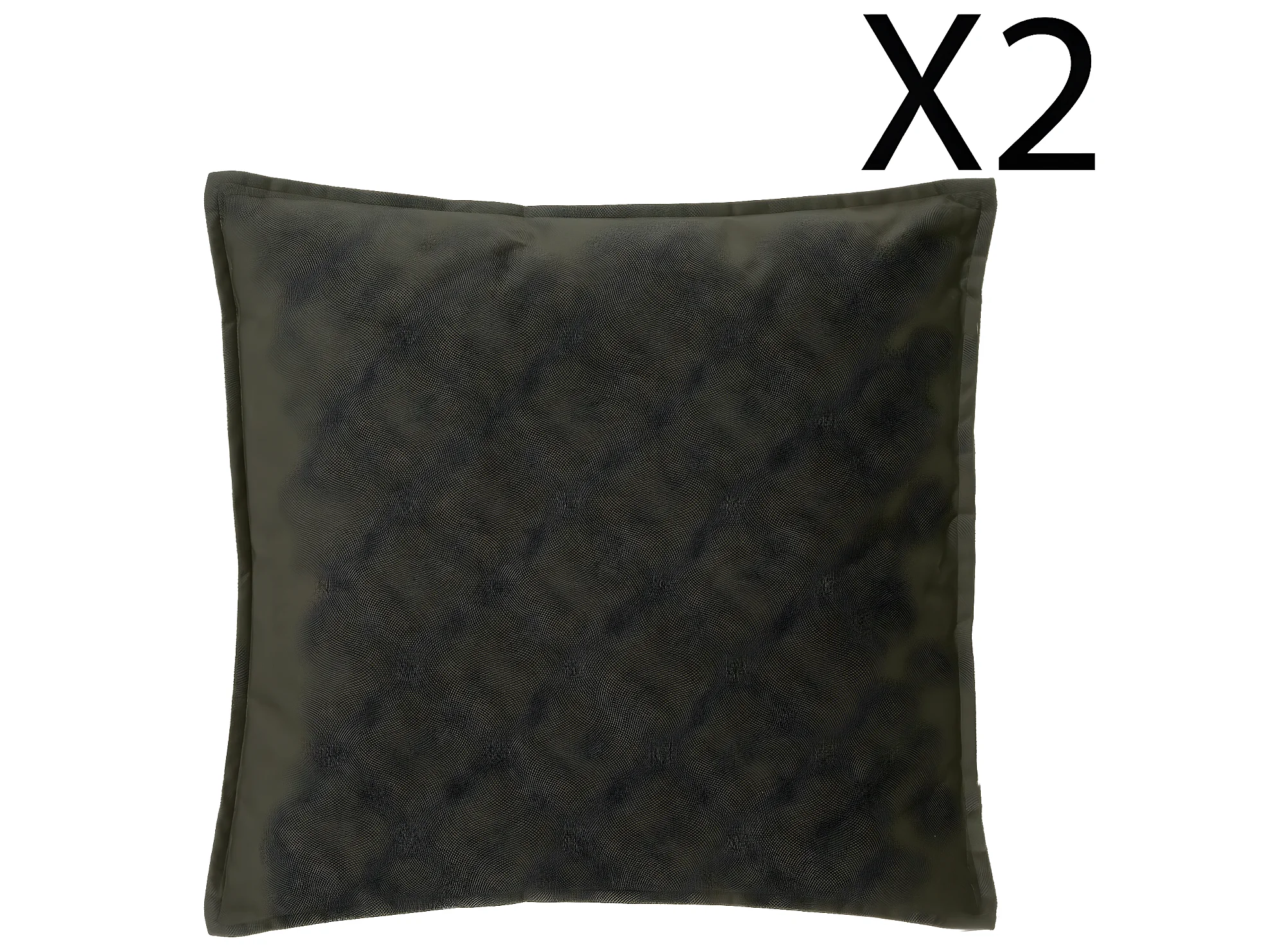 Lot de 2 coussins déhoussables en polyester coloris vert kaki - longueur 45 x Profondeur 5 x Hauteur 45 cm