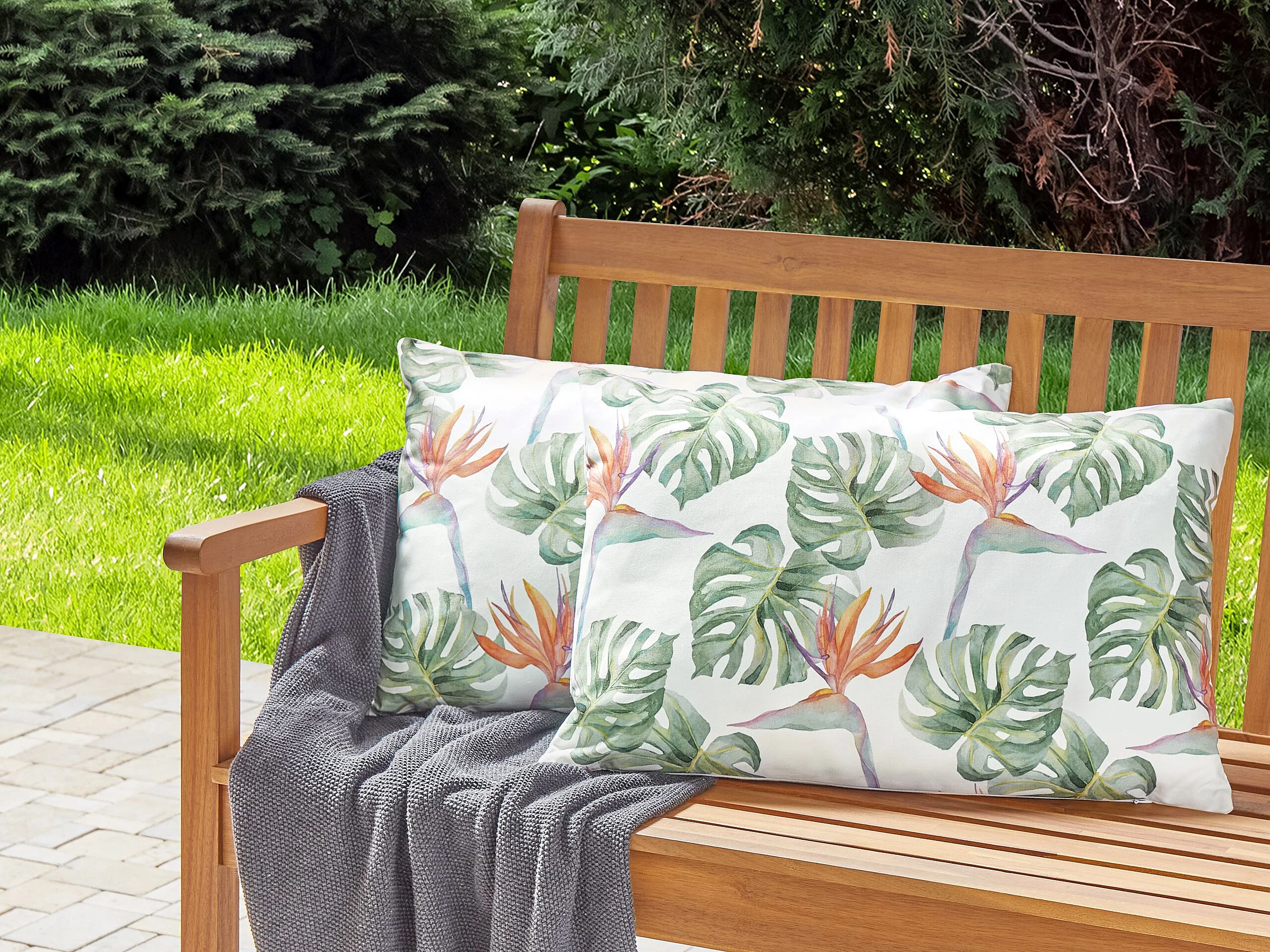 Lot de 2 coussins d'extérieur TORRAZZO Motif de plante 40 x 60 cm Blanc