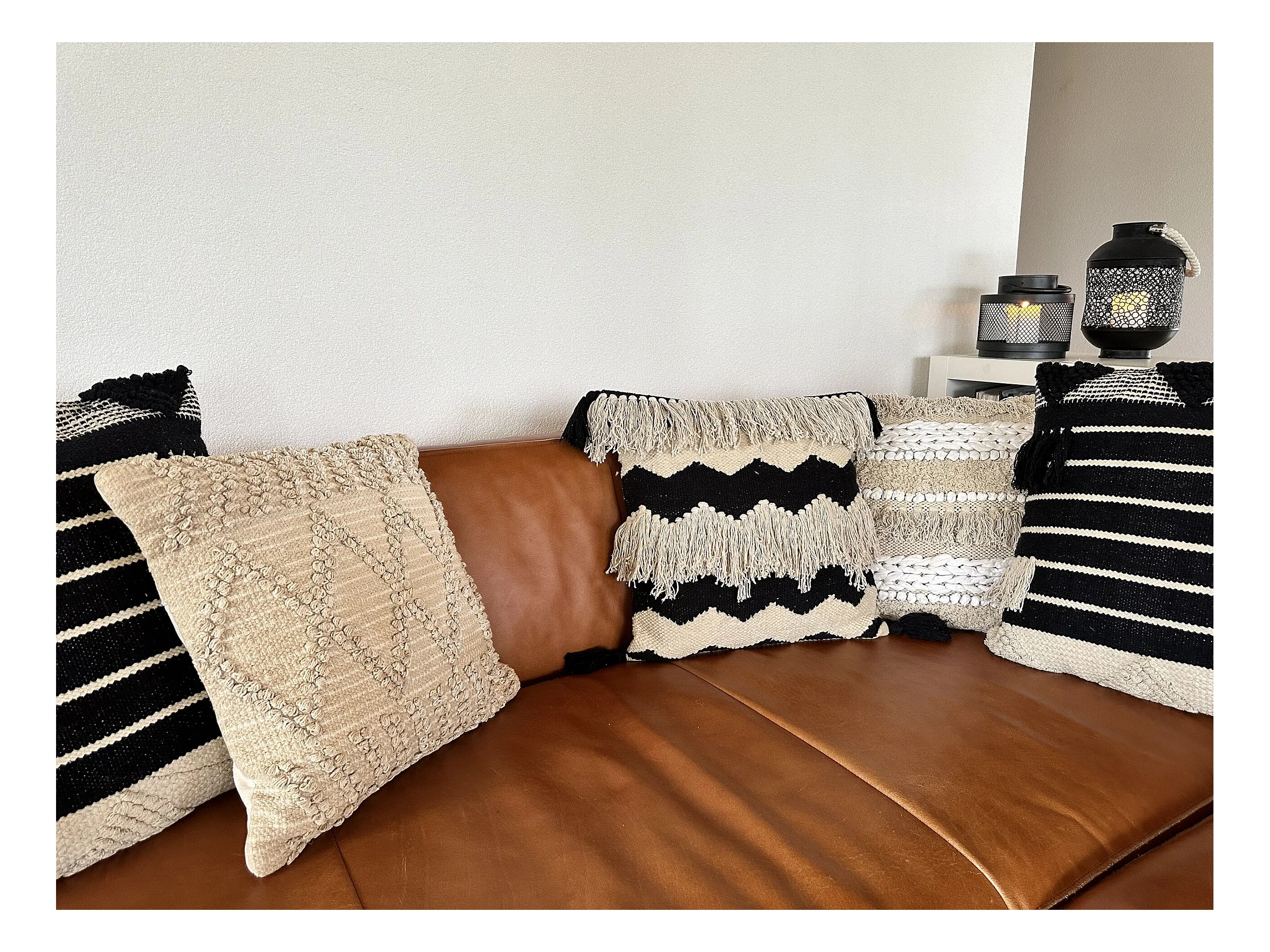 Lot de 2 coussins décoratifs HYDRANGEA Coton 45 x 45 cm Beige clair Motif géométrique
