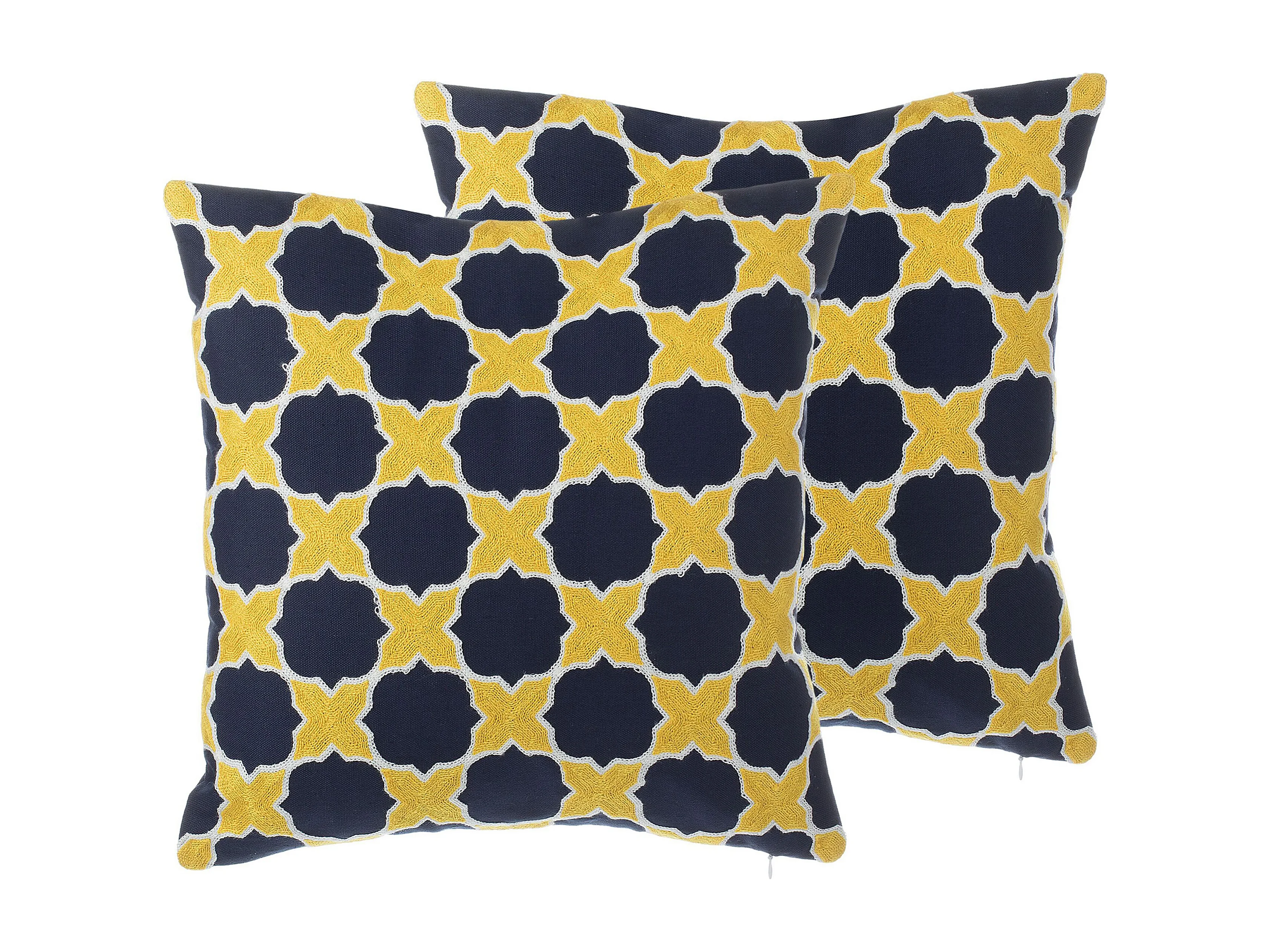 Lot de 2 coussins décoratifs MUSCARI Coton 45 x 45 cm Jaune Bleu Ikat