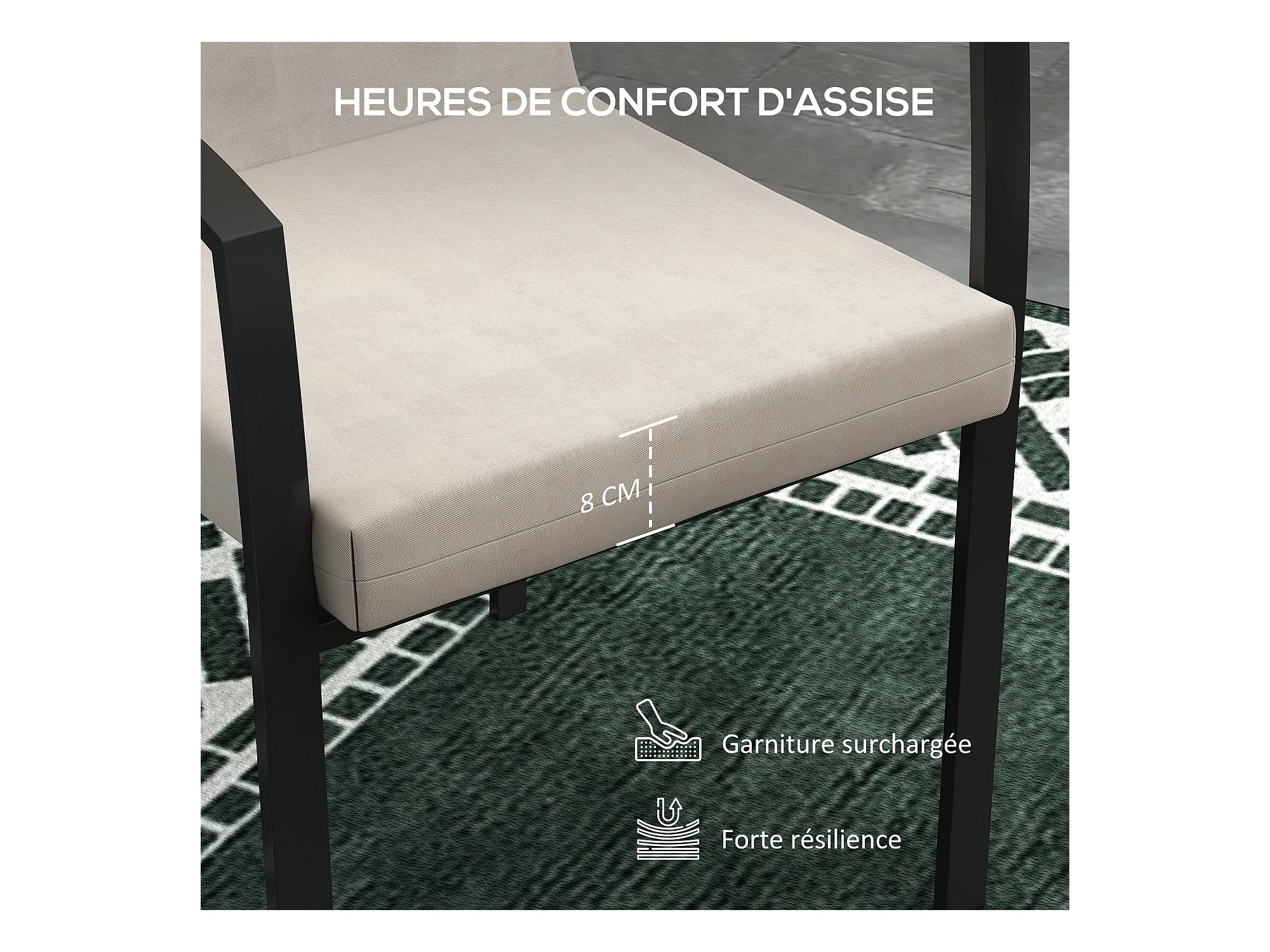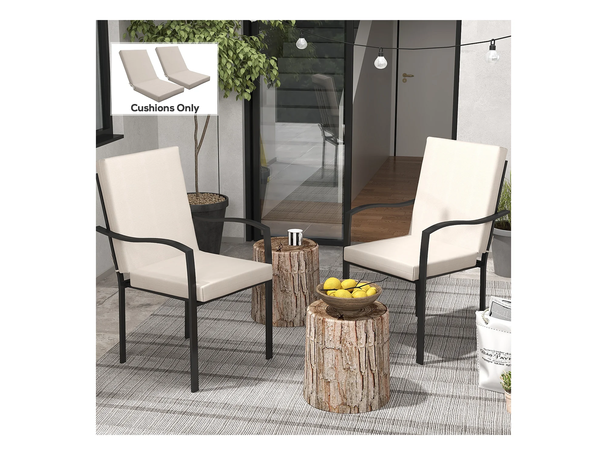 Lot de 6 coussins de chaises de jardin polyester beige
