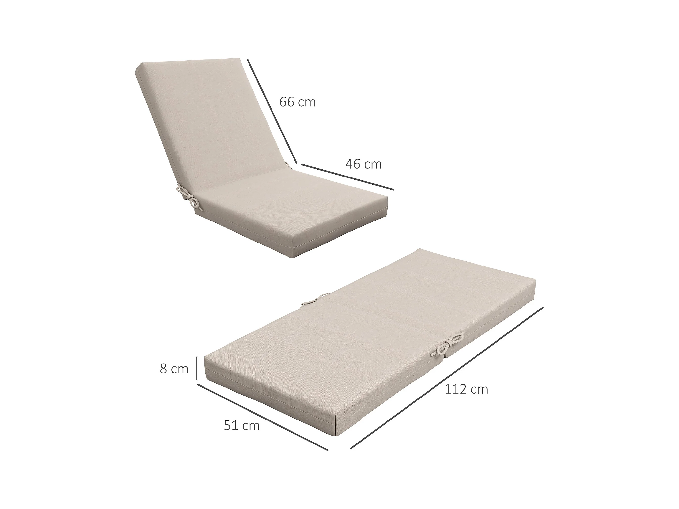Lot de 2 coussins galettes de chaise de jardin - dim. 112L x 51l x ép. 8 cm - cordons attache - polyester déperlant beige