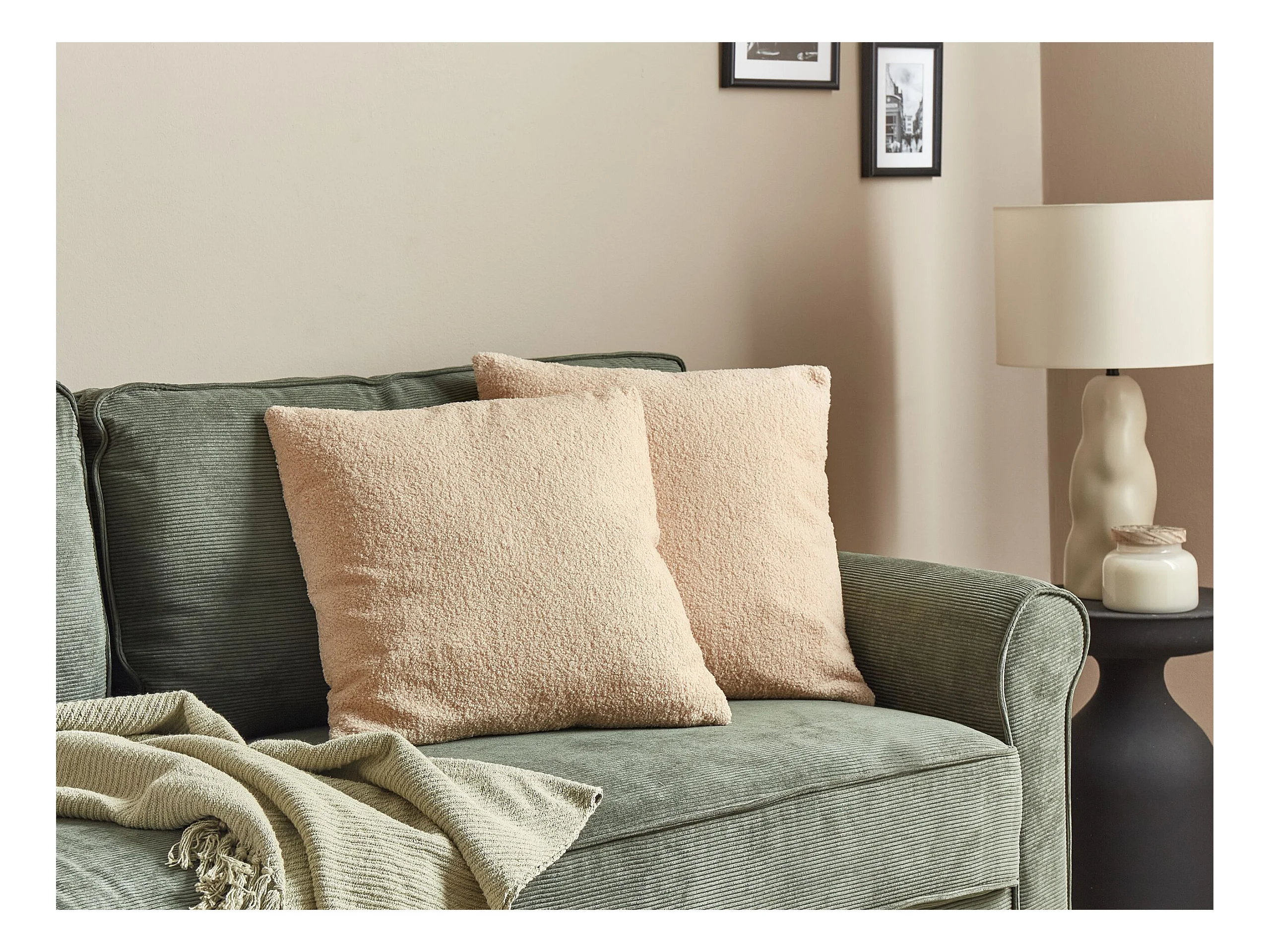 Lot de 2 coussins décoratifs LEUZEA Bouclé 60 x 60 cm Beige Unicolore