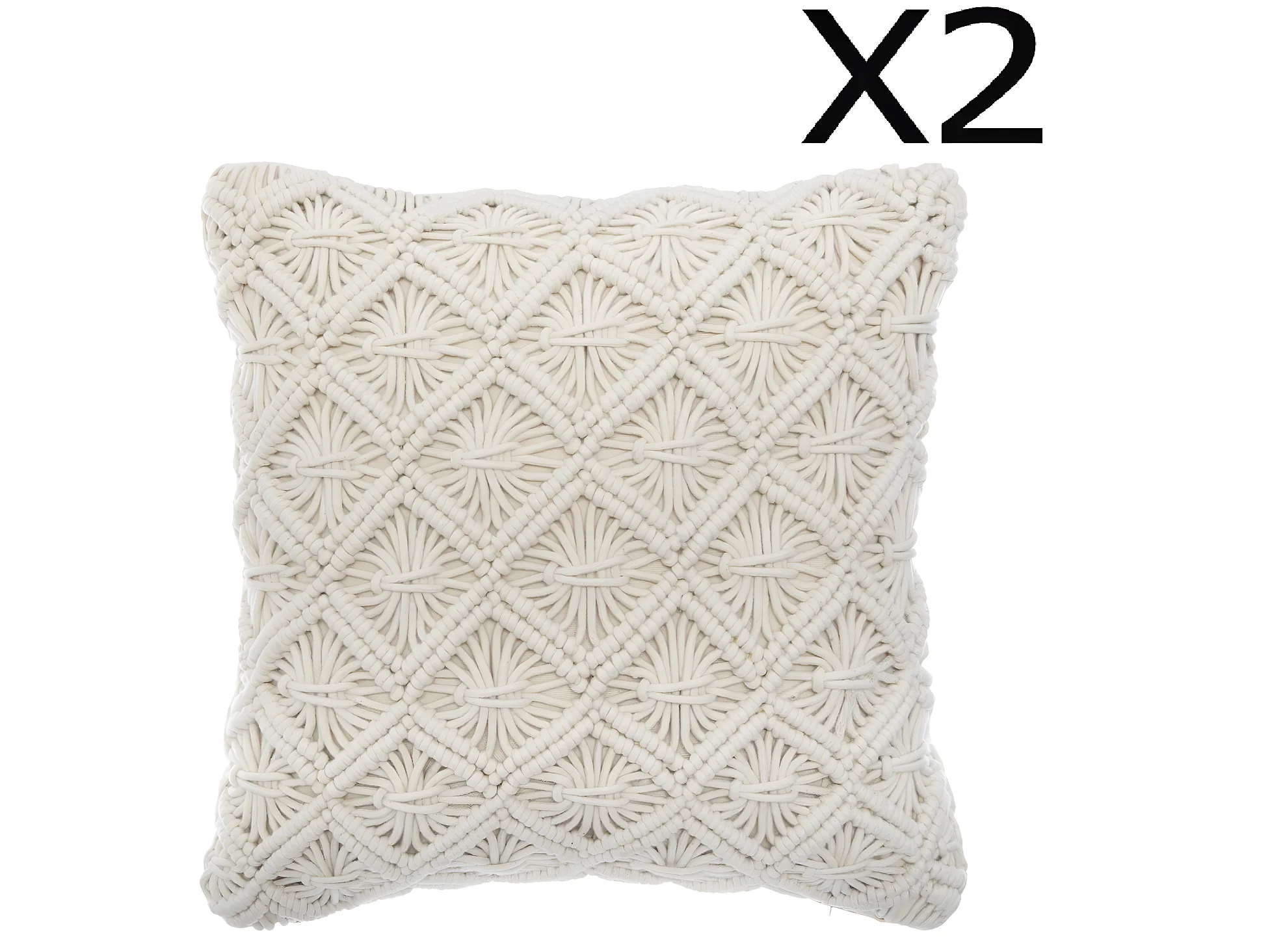 Lot de 2 Coussins macramé en coton - L. 40 x l. 40 cm