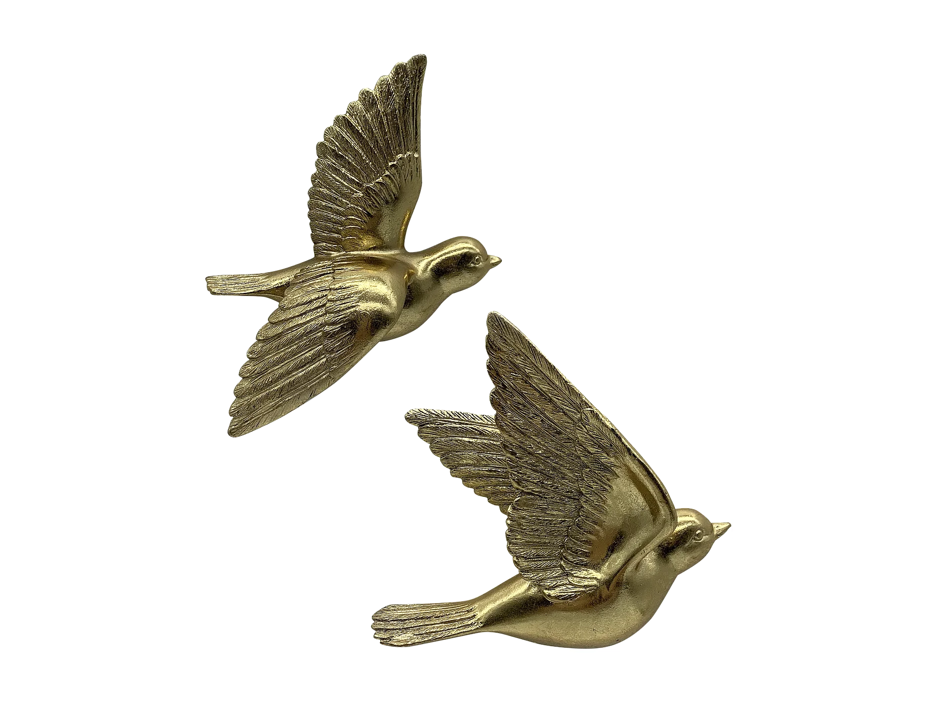 Lot de 2 déco murales oiseaux dorés 12,5x15cm