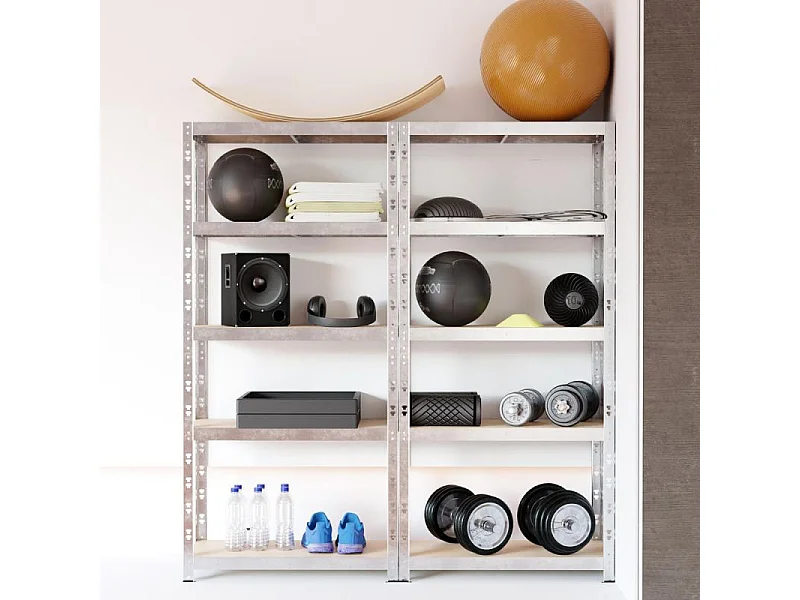 Pack 2 Rayonnages modulaires galvanisés avec 5 étagères réglables 180x90x40cm 875Kg 7house