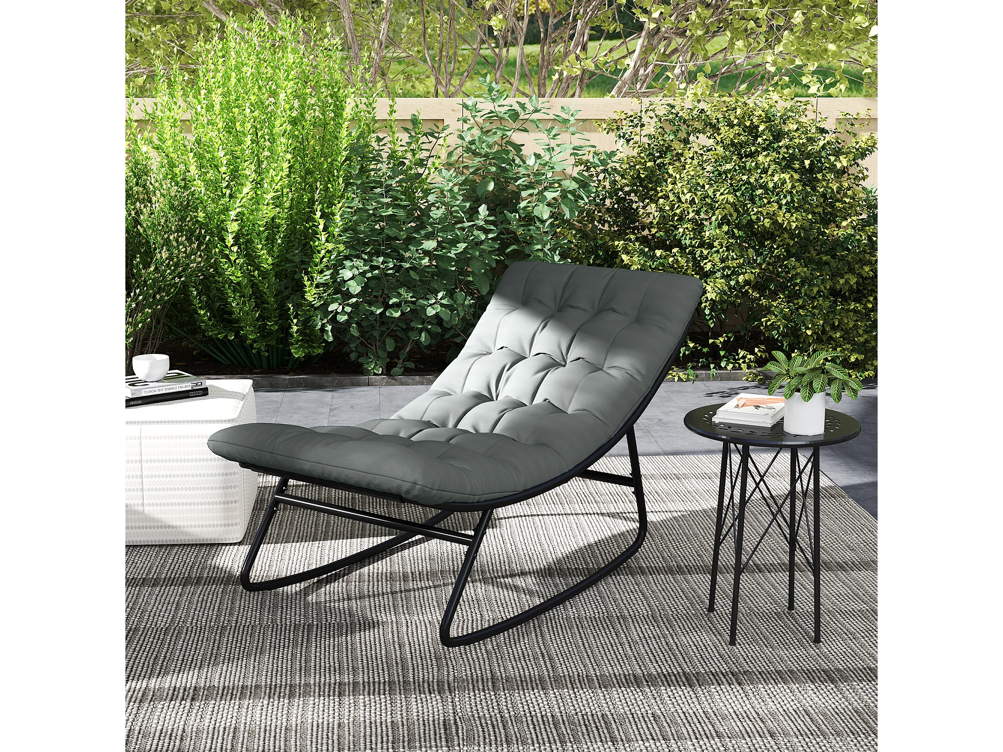 Lot de 2 fauteuils à bascule de jardin avec matelas style Chesterfield acier noir tissu gris