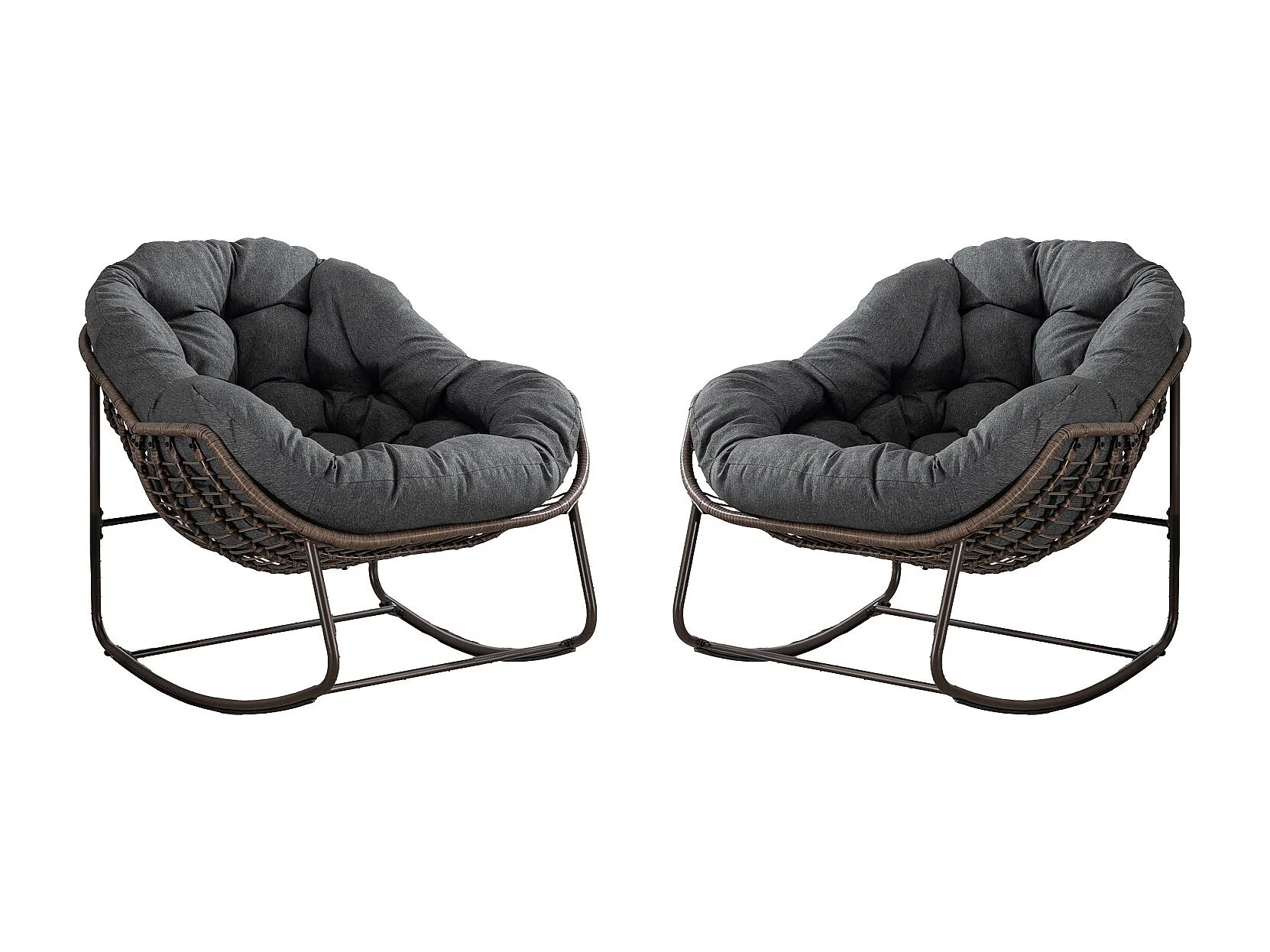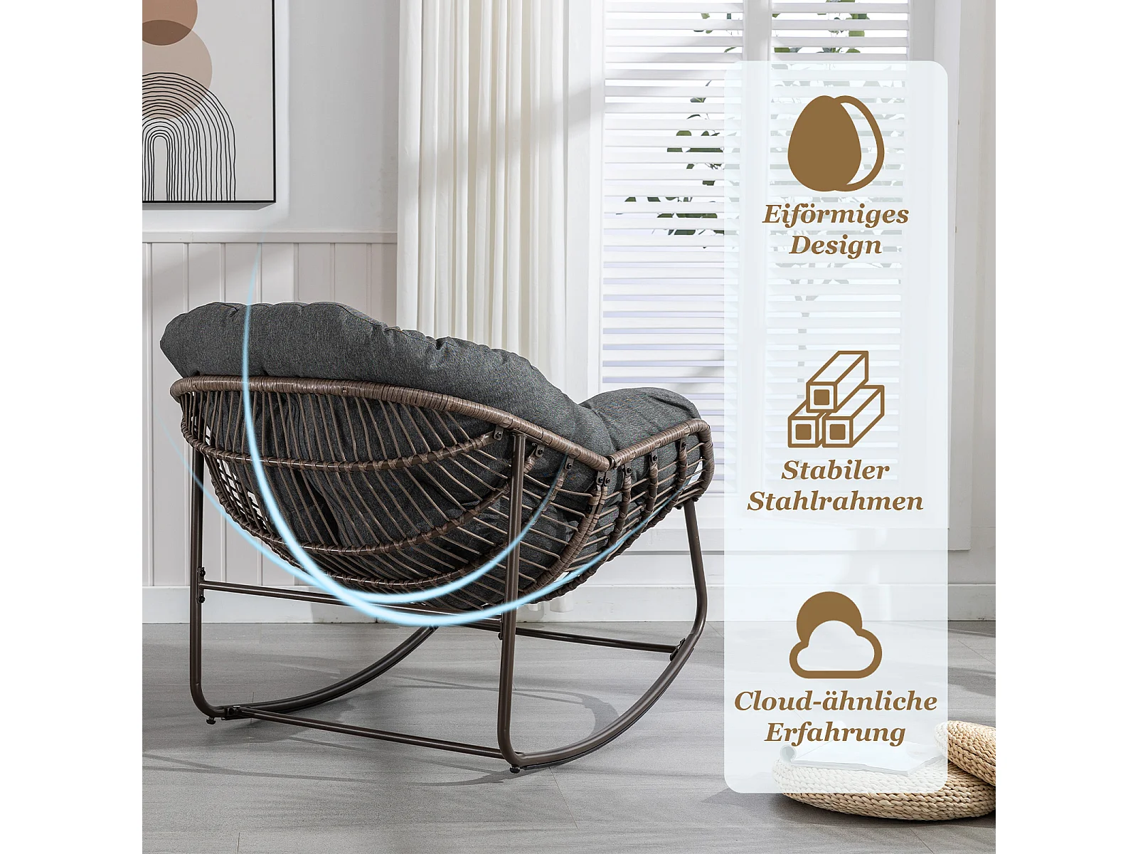 Lot de 2 Fauteuils à Bascule en Rotin Naturel – Forme Œuf et Coussins Gris – Confortable pour Salon, Véranda ou Chambre