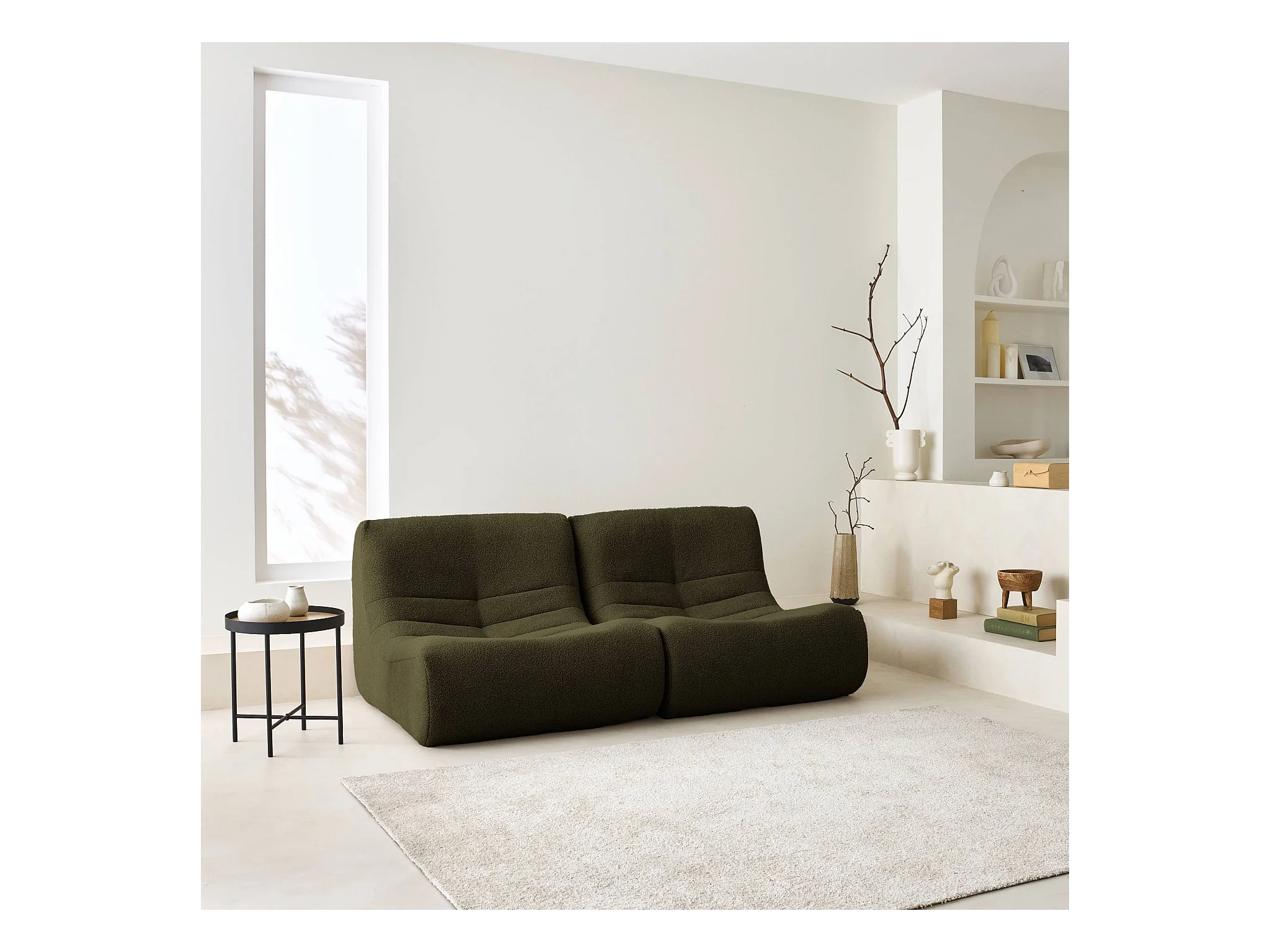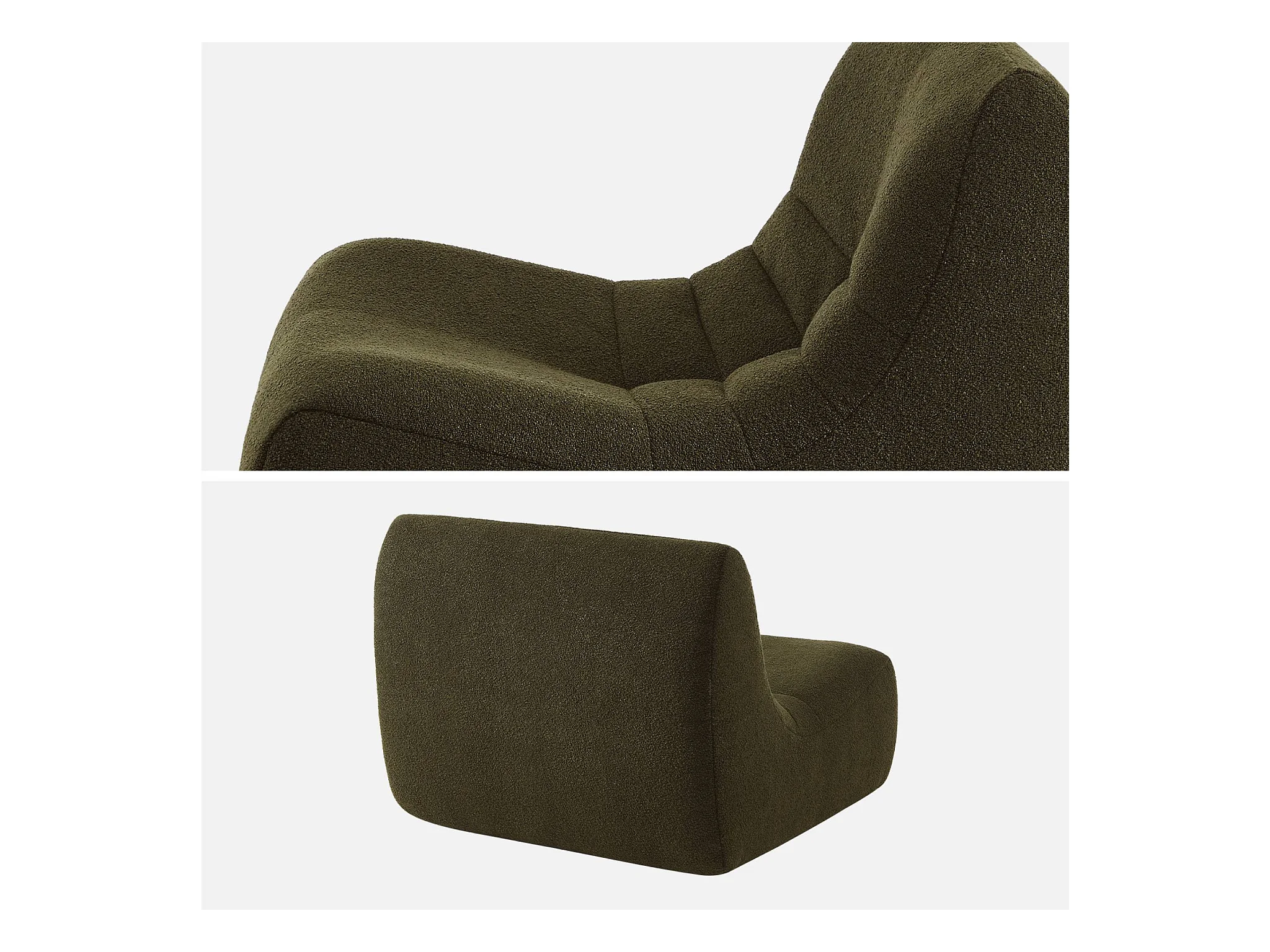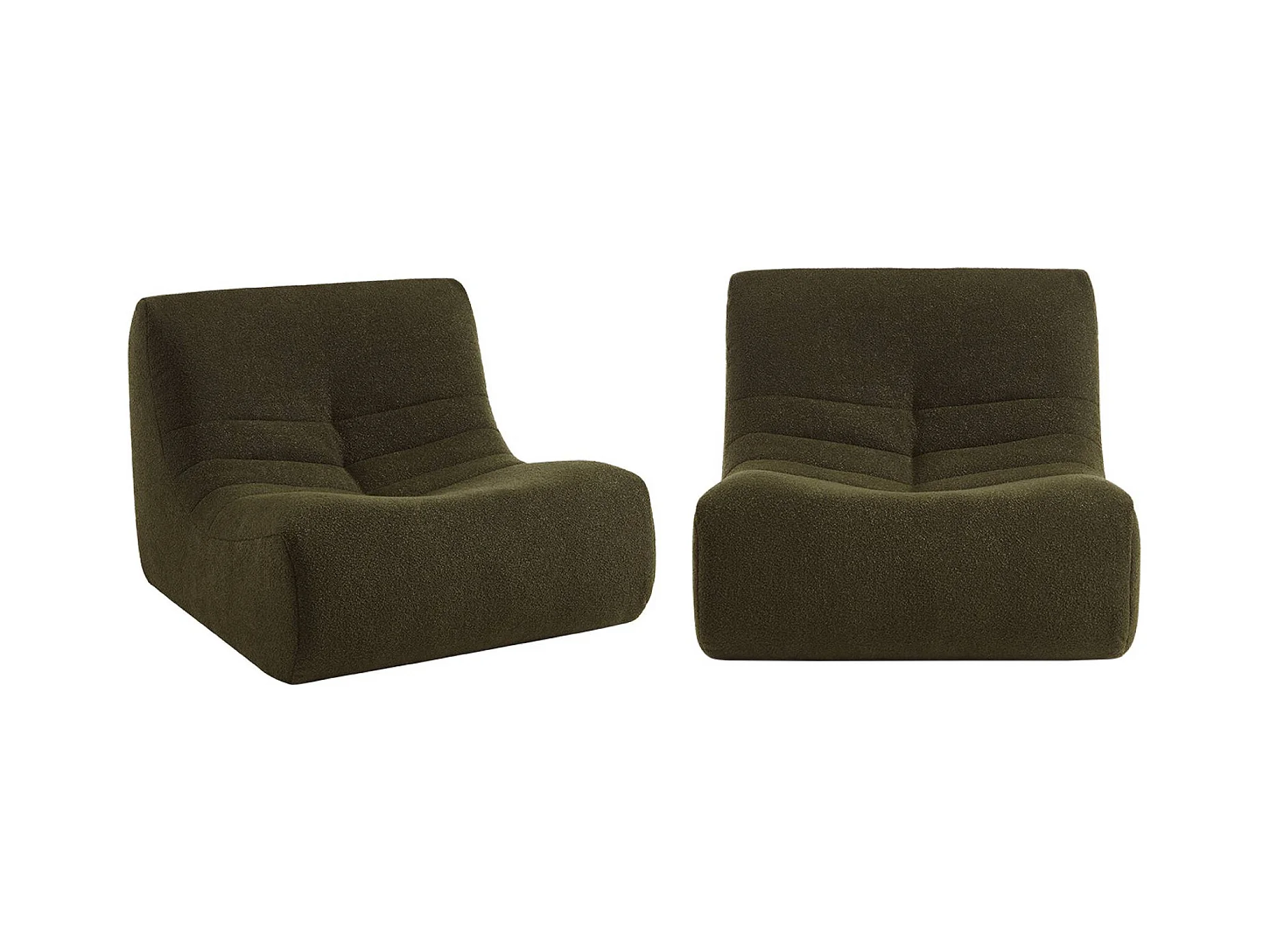 Lot de 2 fauteuils chauffeuses en bouclette texturée kaki style contemporain 1 place