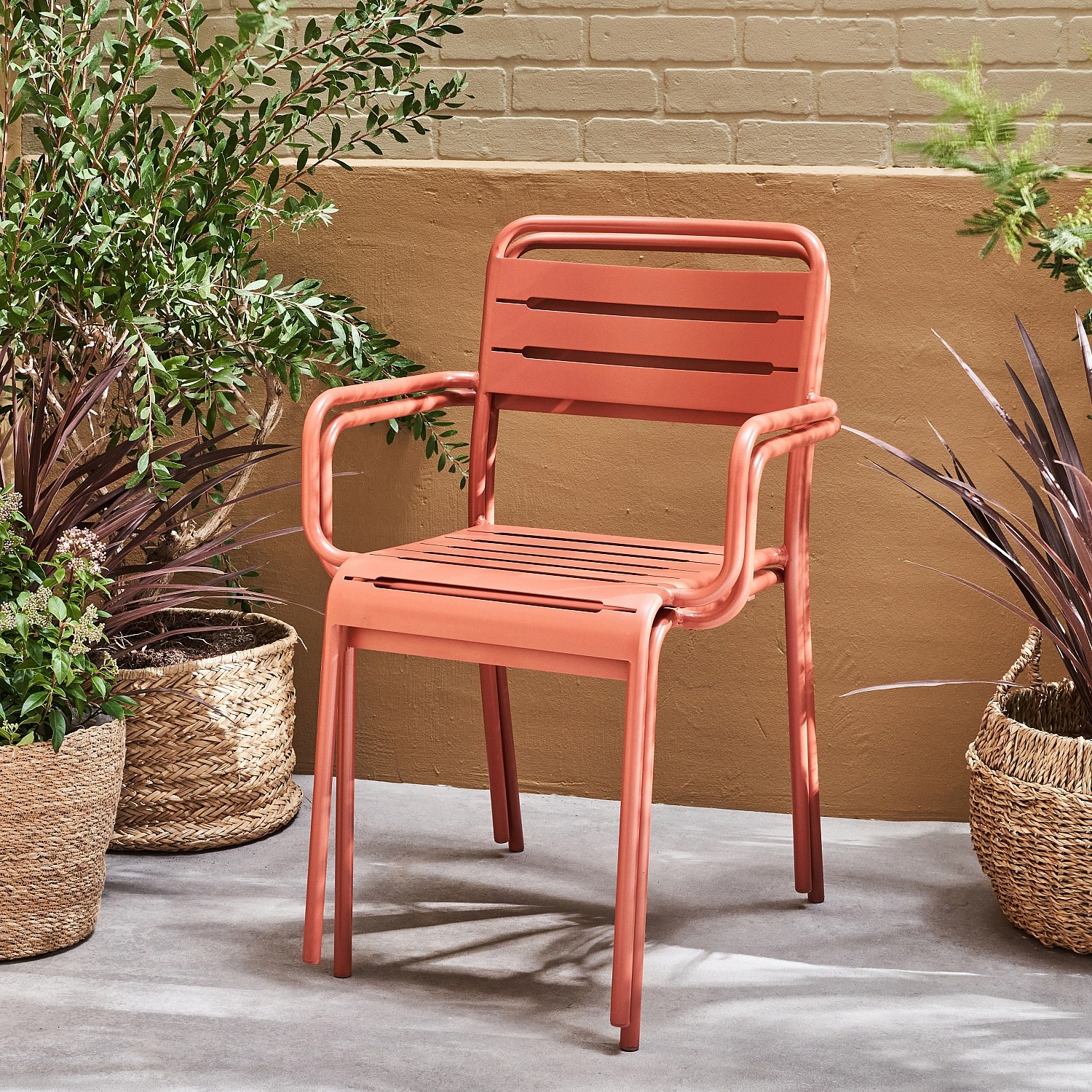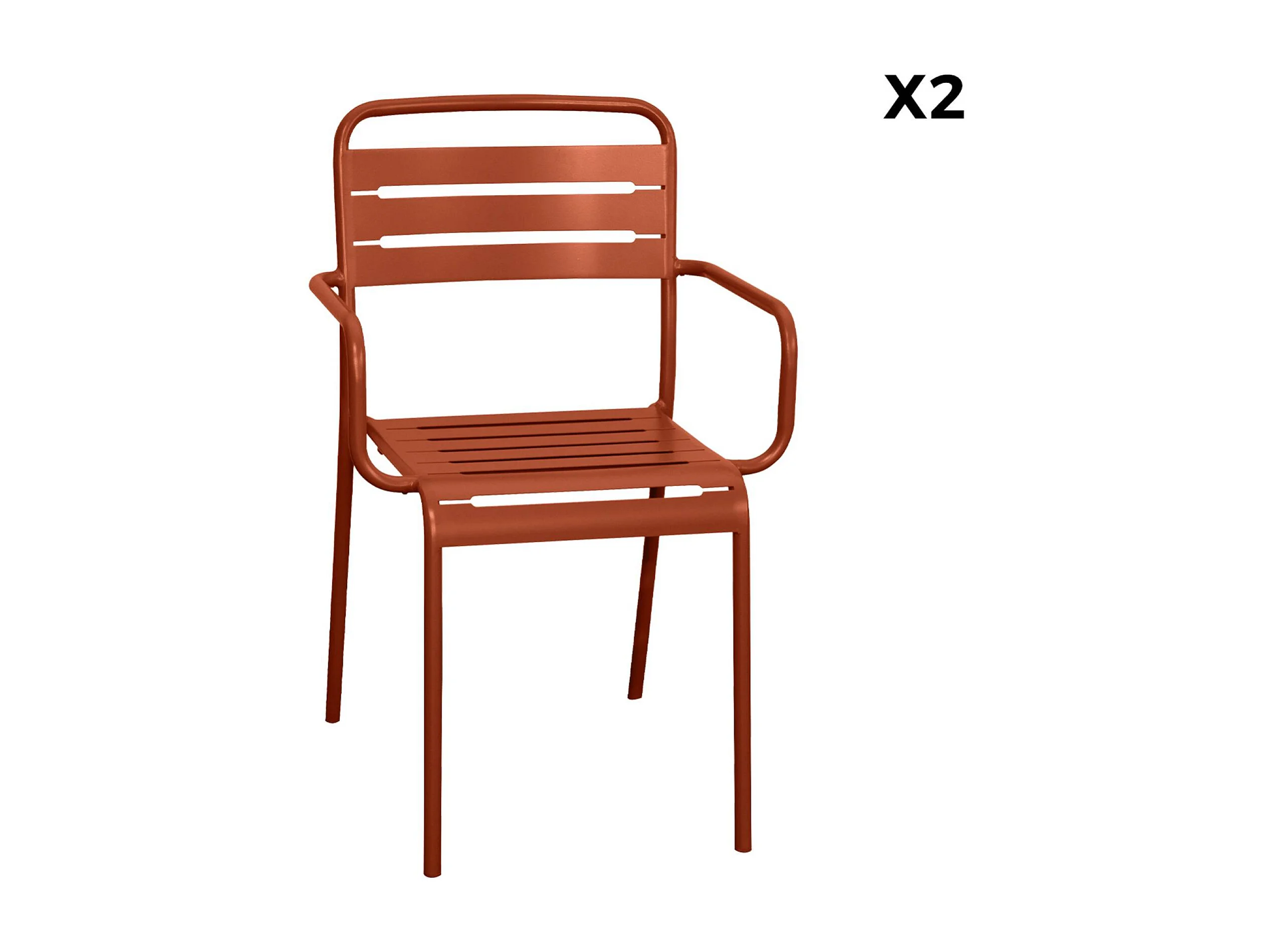 Lot de 2 fauteuils de jardin acier. 2 places. terracotta. Amelia. L50.4 X P53 X H79.5cm