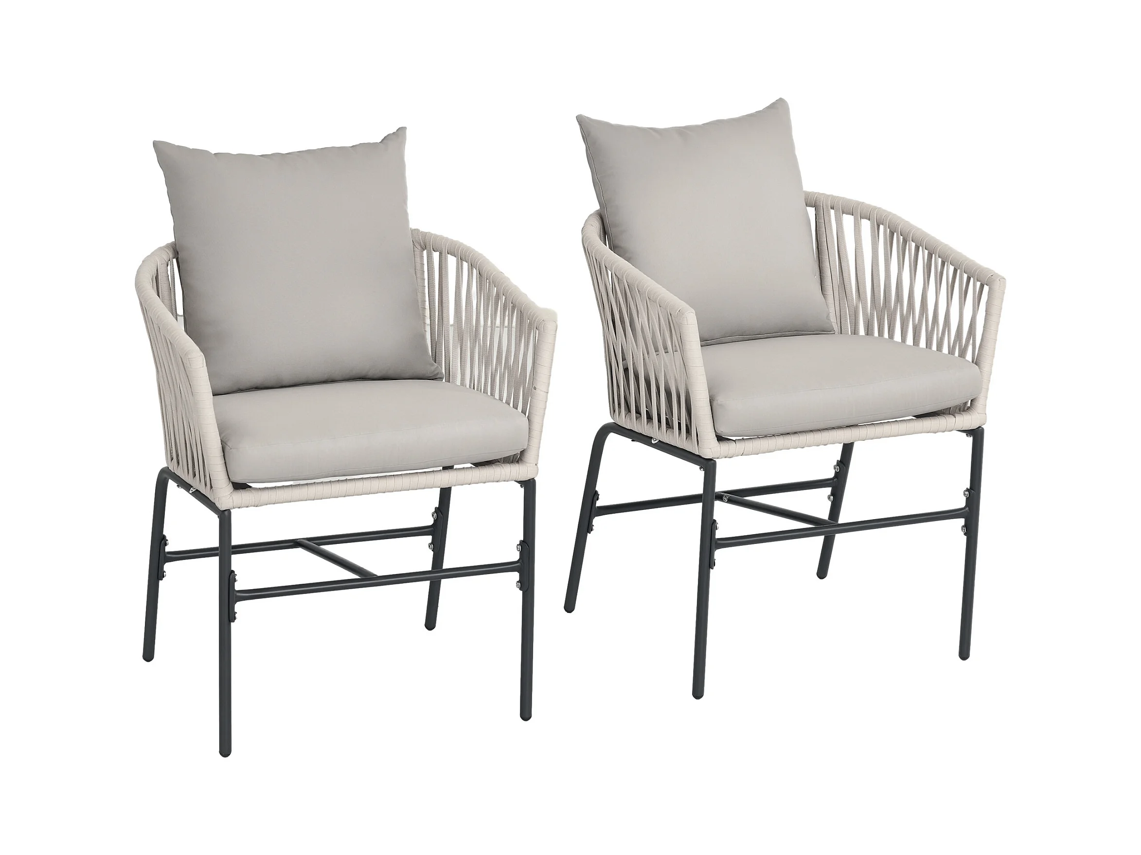 Lot de 2 fauteuils de jardin avec coussins métal cordes PE noir gris