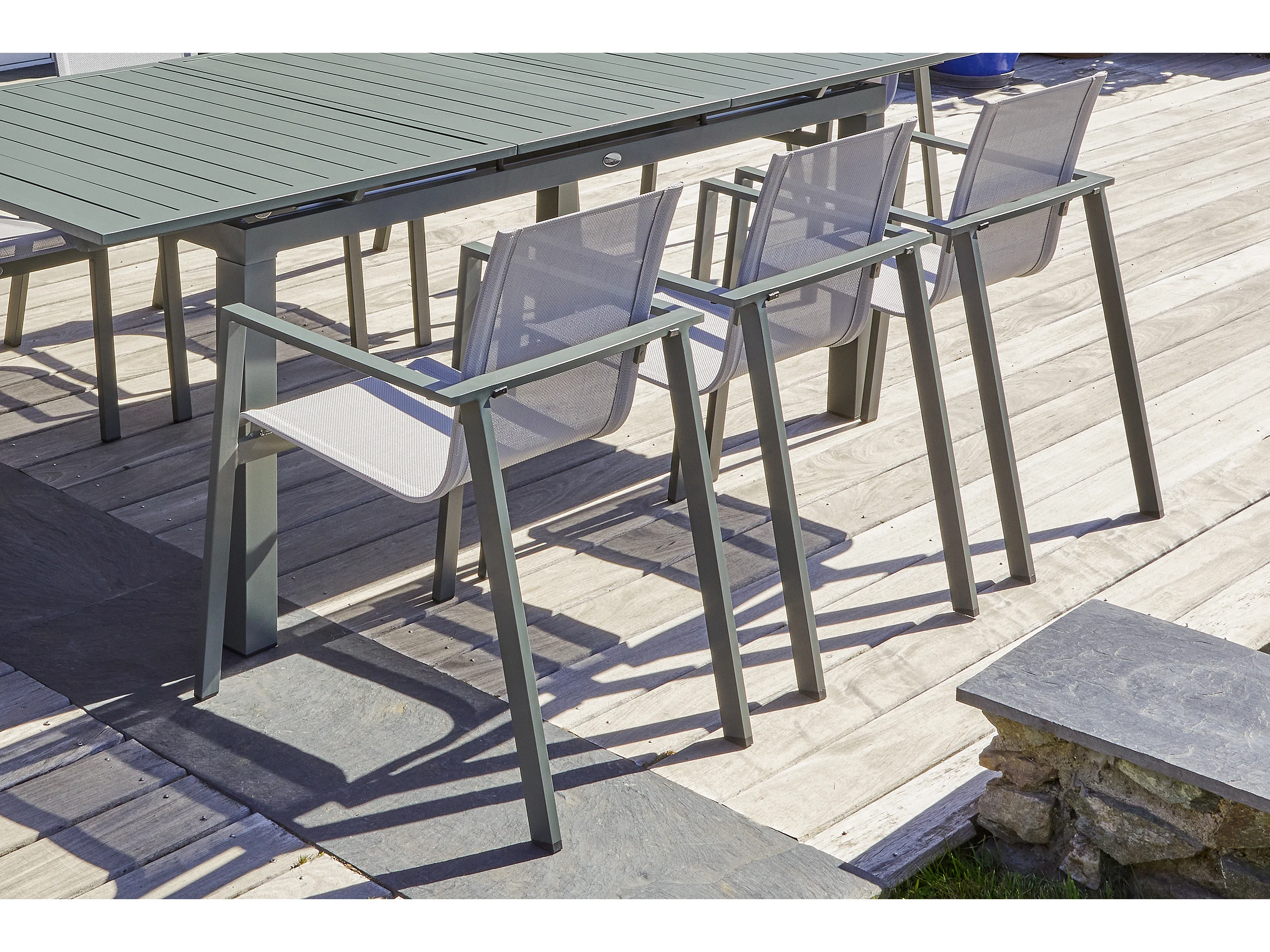 Lot de 2 fauteuils de jardin empilables en alu et toilee