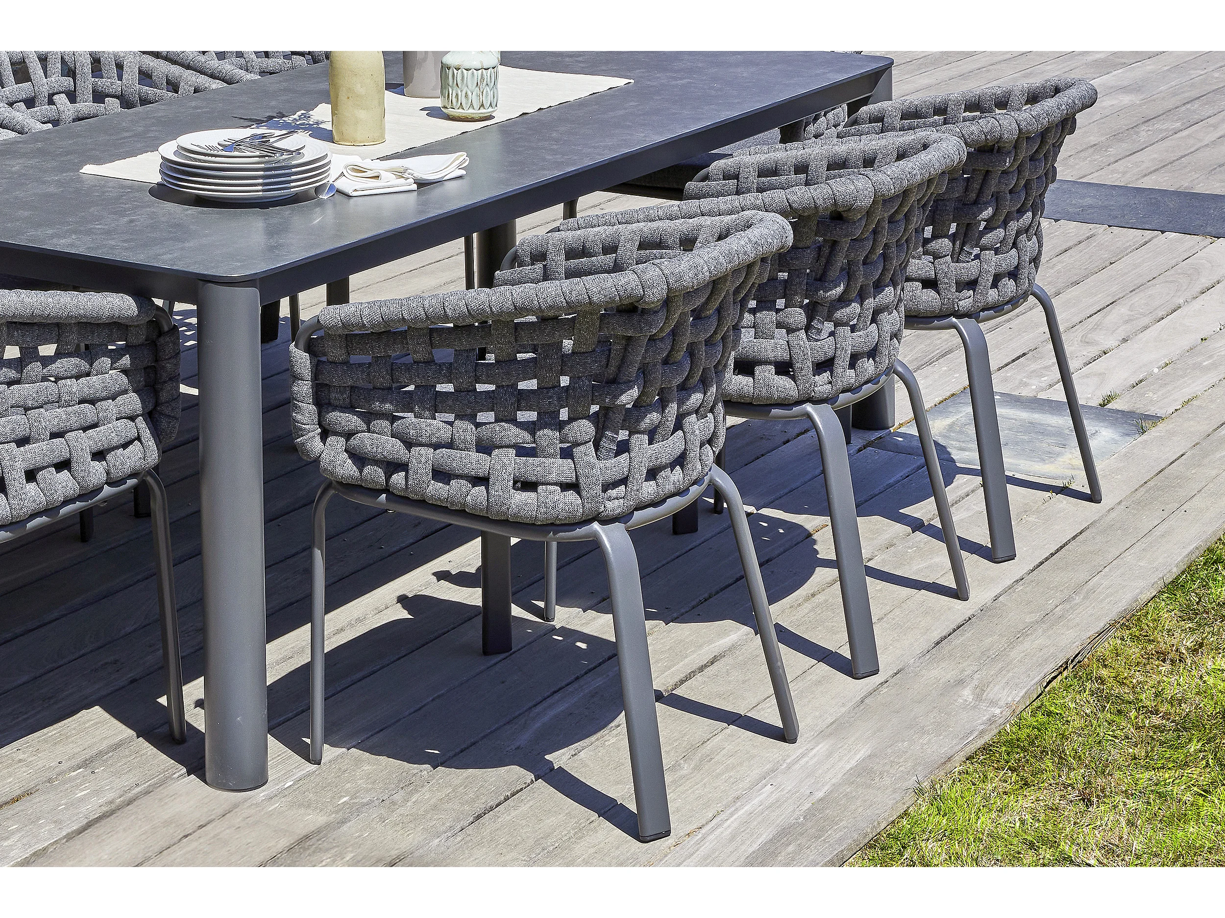 Lot de 2 fauteuil de jardin en corde tissée et aluminium