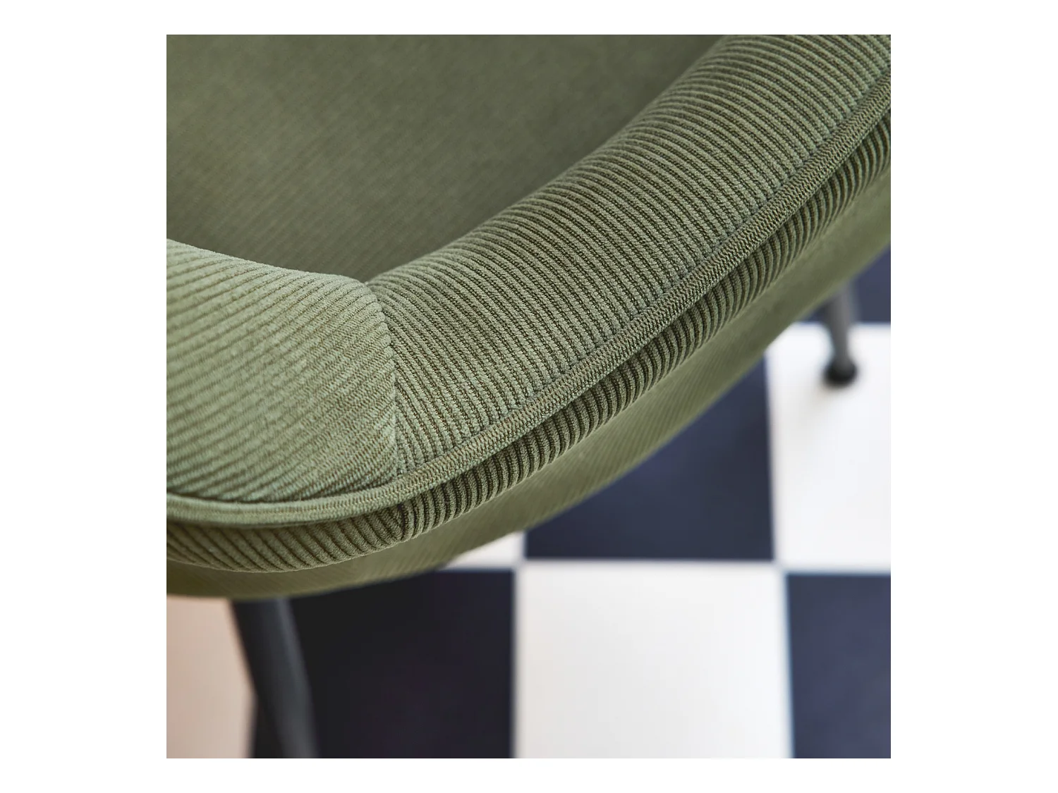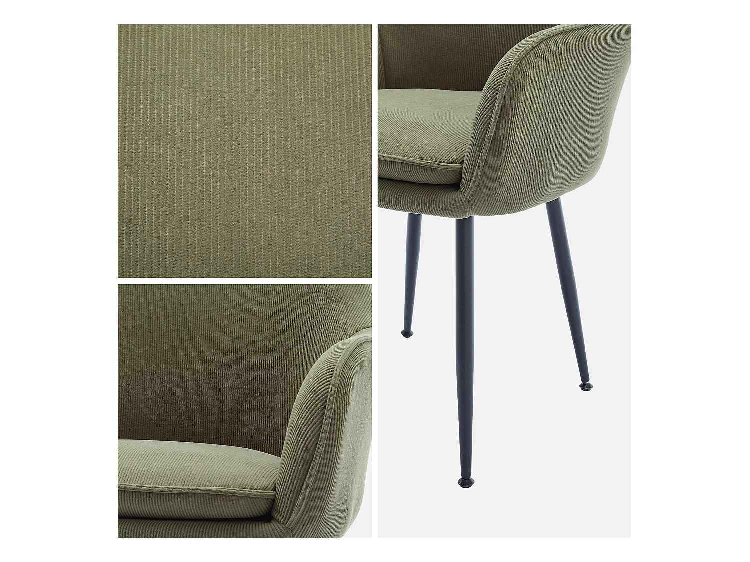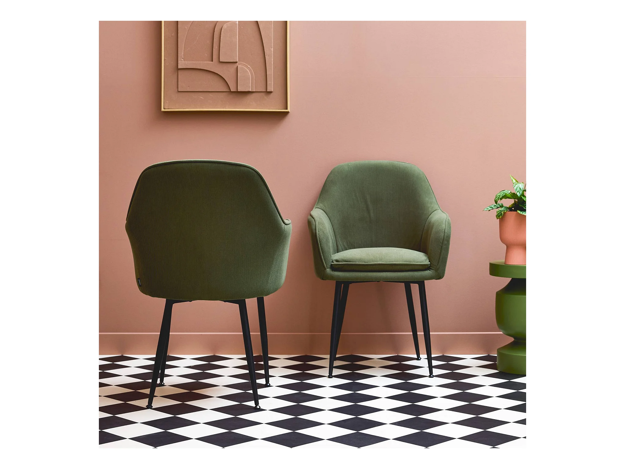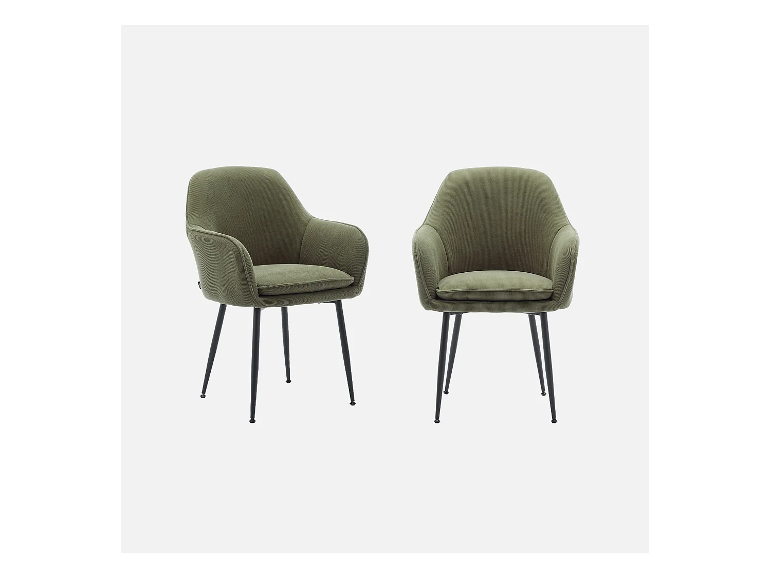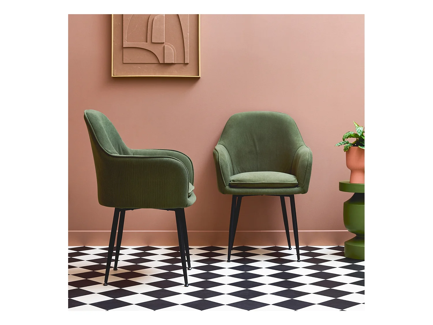 Lot de 2 fauteuils en velours côtelé kaki et pieds en métal noir mat. L 57 x P 59 x H 84.5