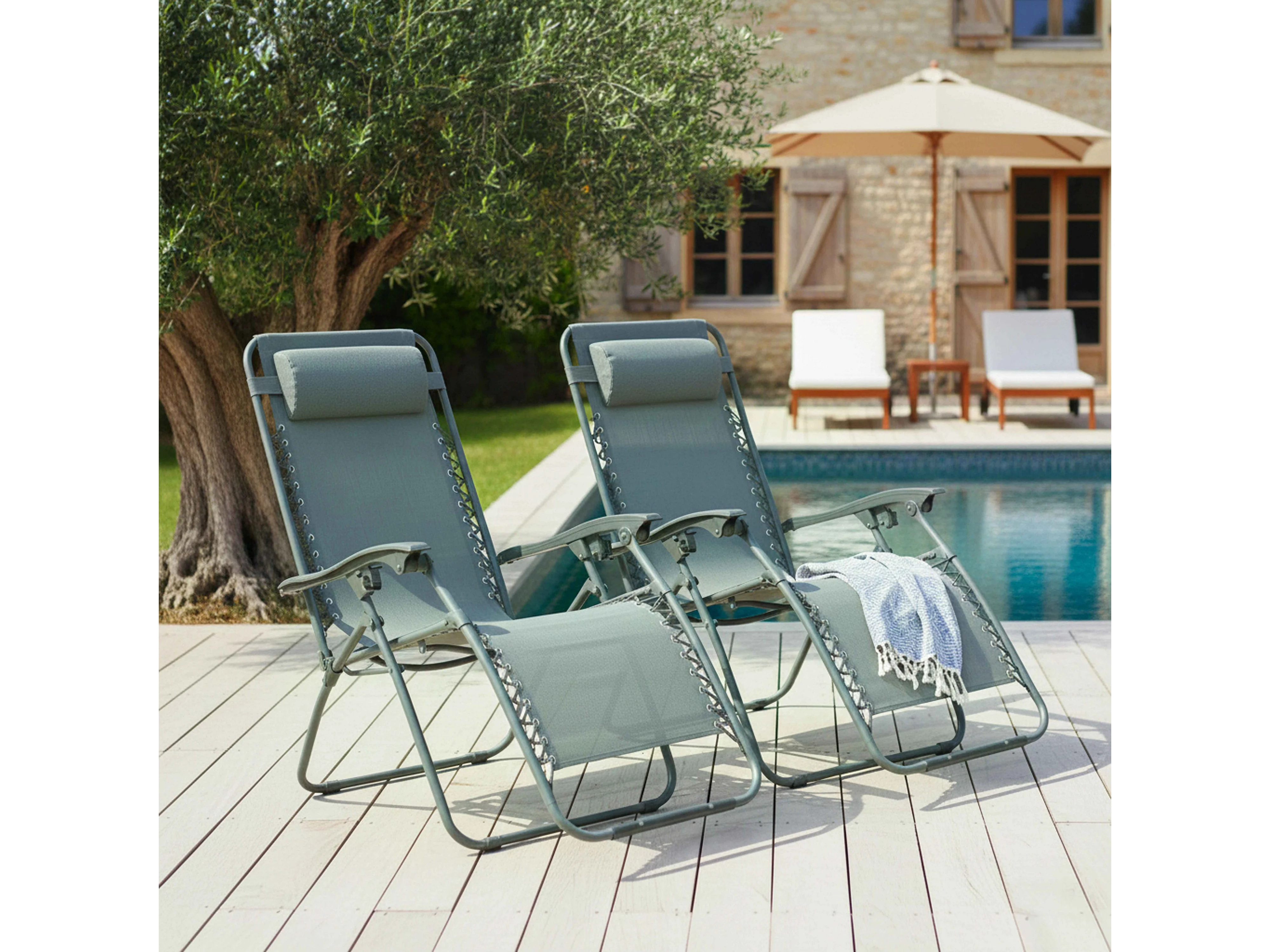 Lot de 2 fauteuils lounge inclinable en acier bleu foncé