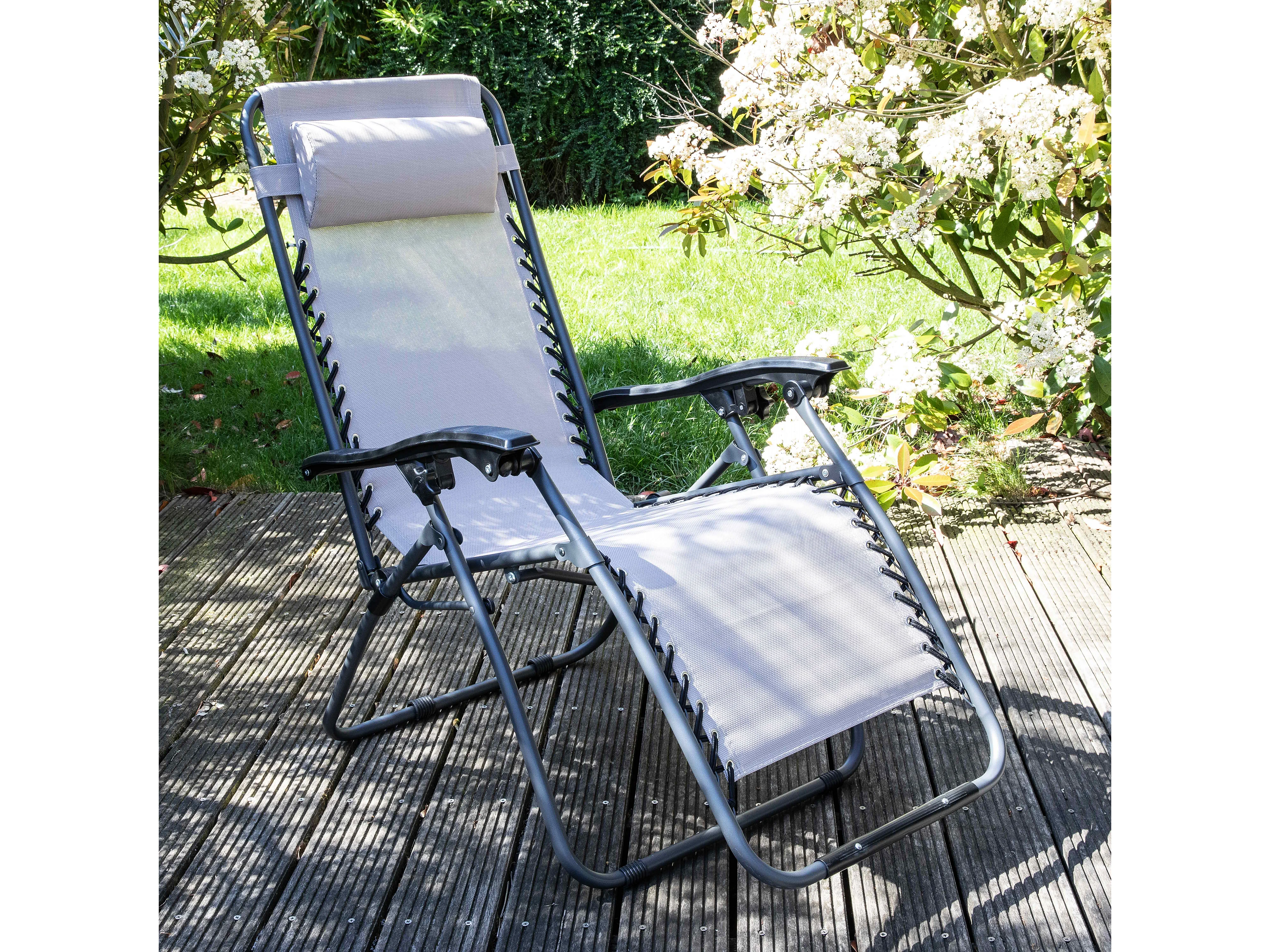 Lot de 2 fauteuils lounge inclinable en acier taupe