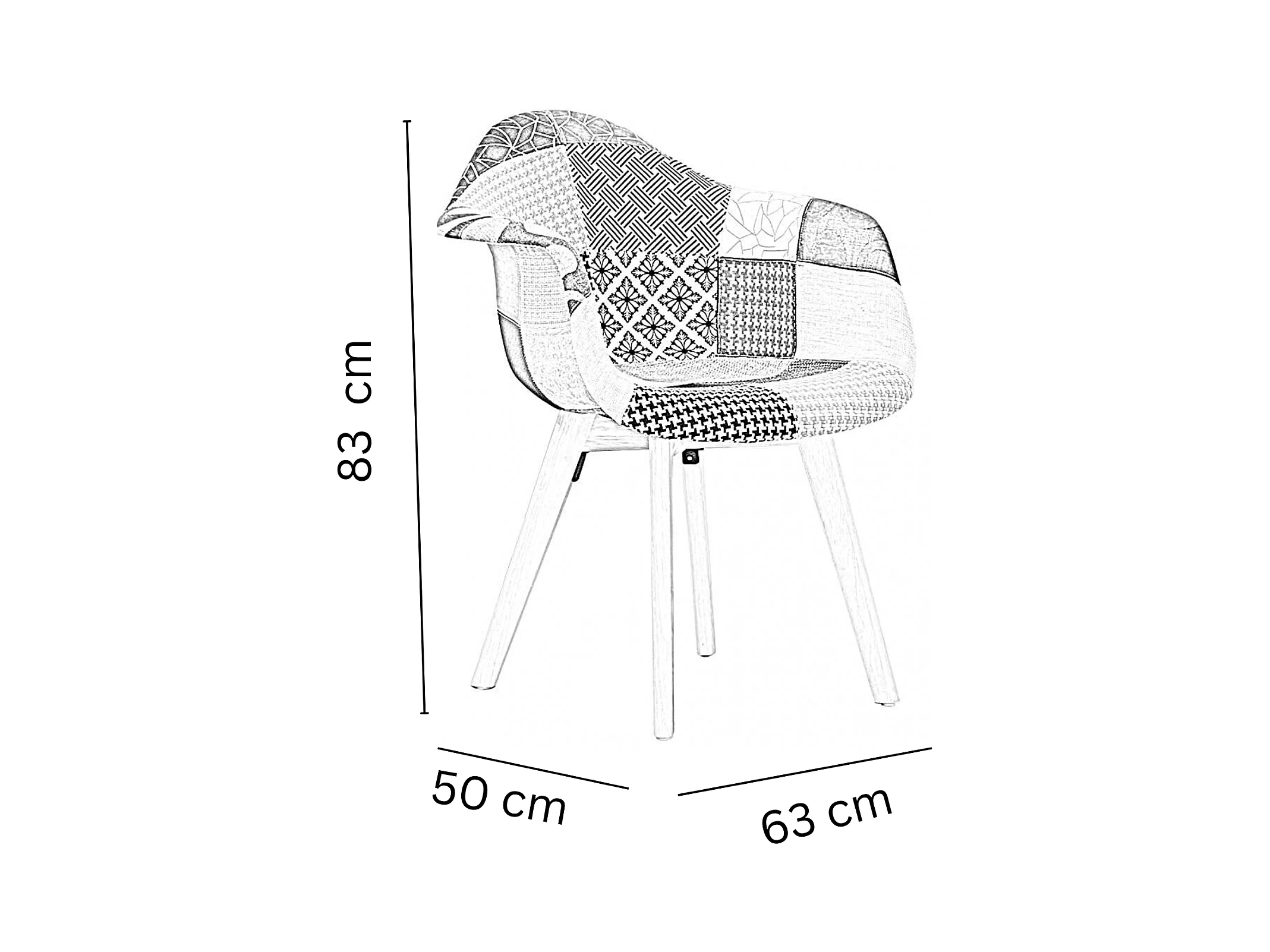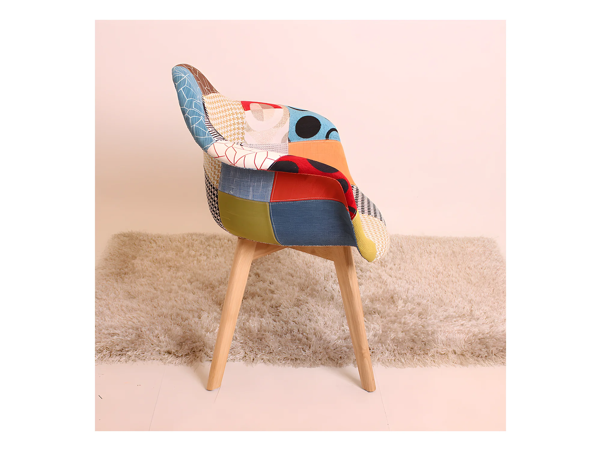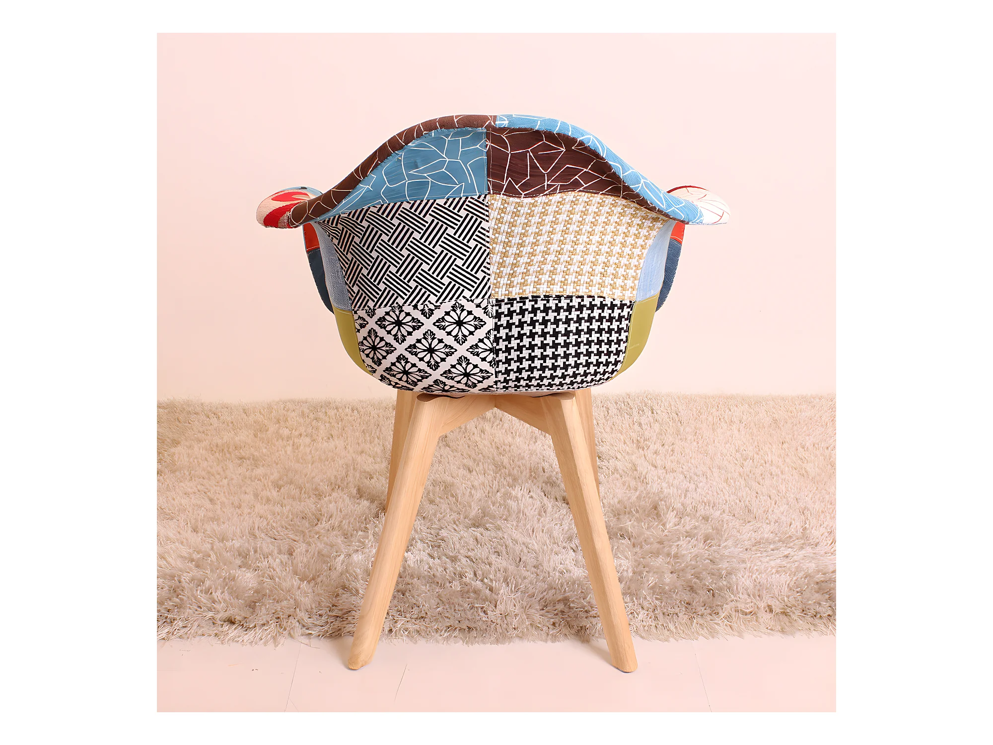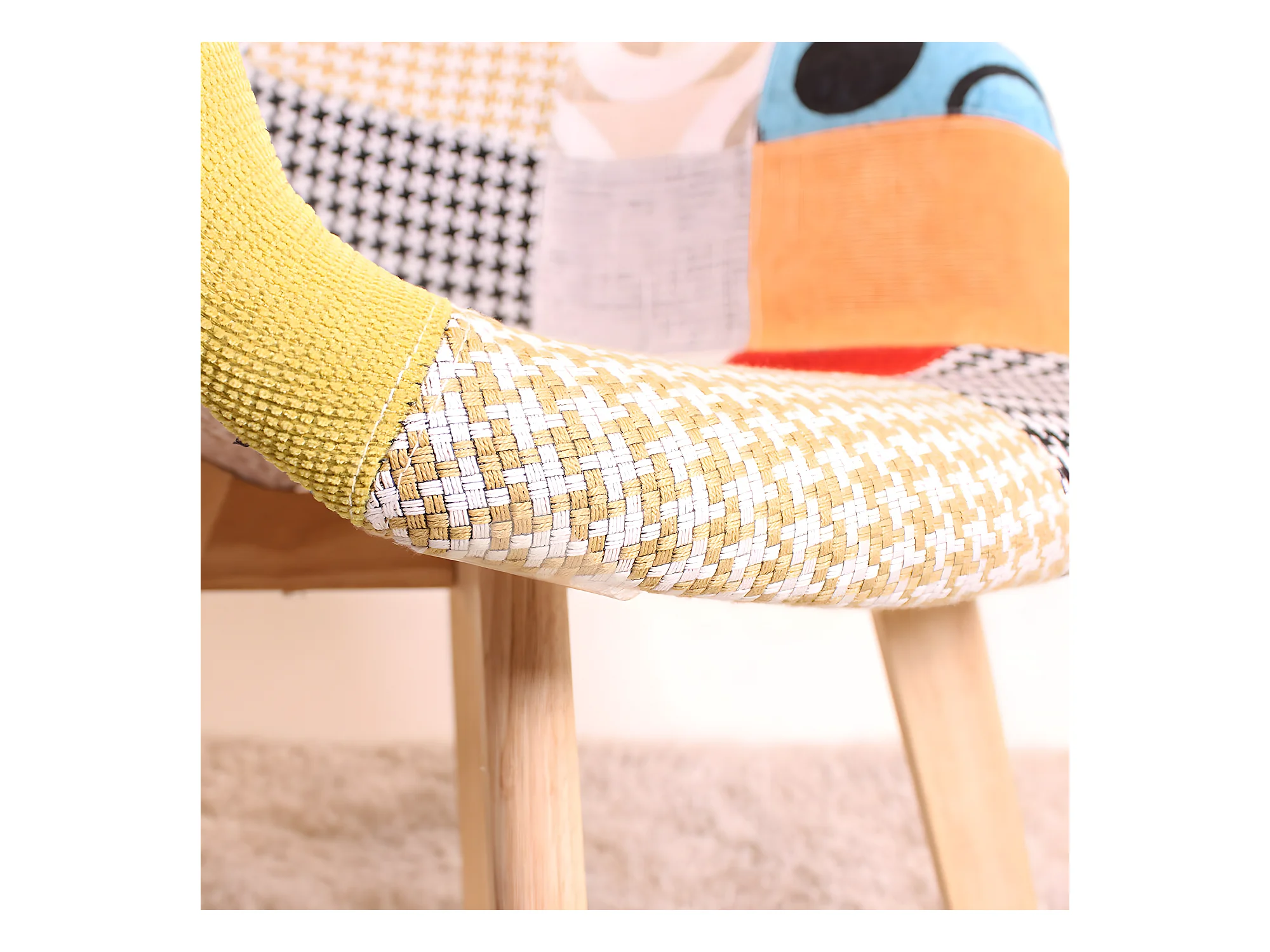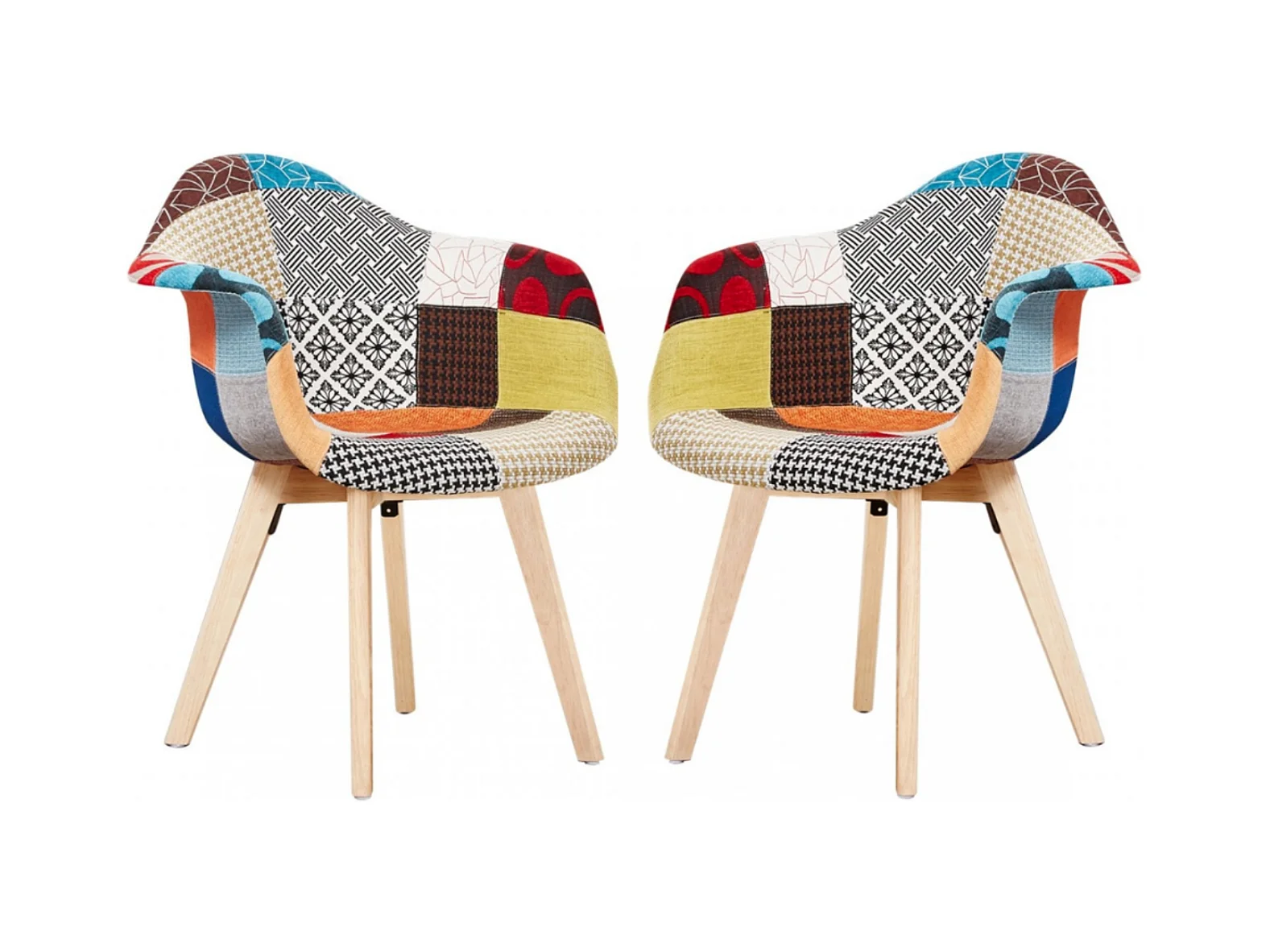 Lot de 2 fauteuils patchwork scandinave Tub - Tissu recouvert de pieds en bois - Multicolore