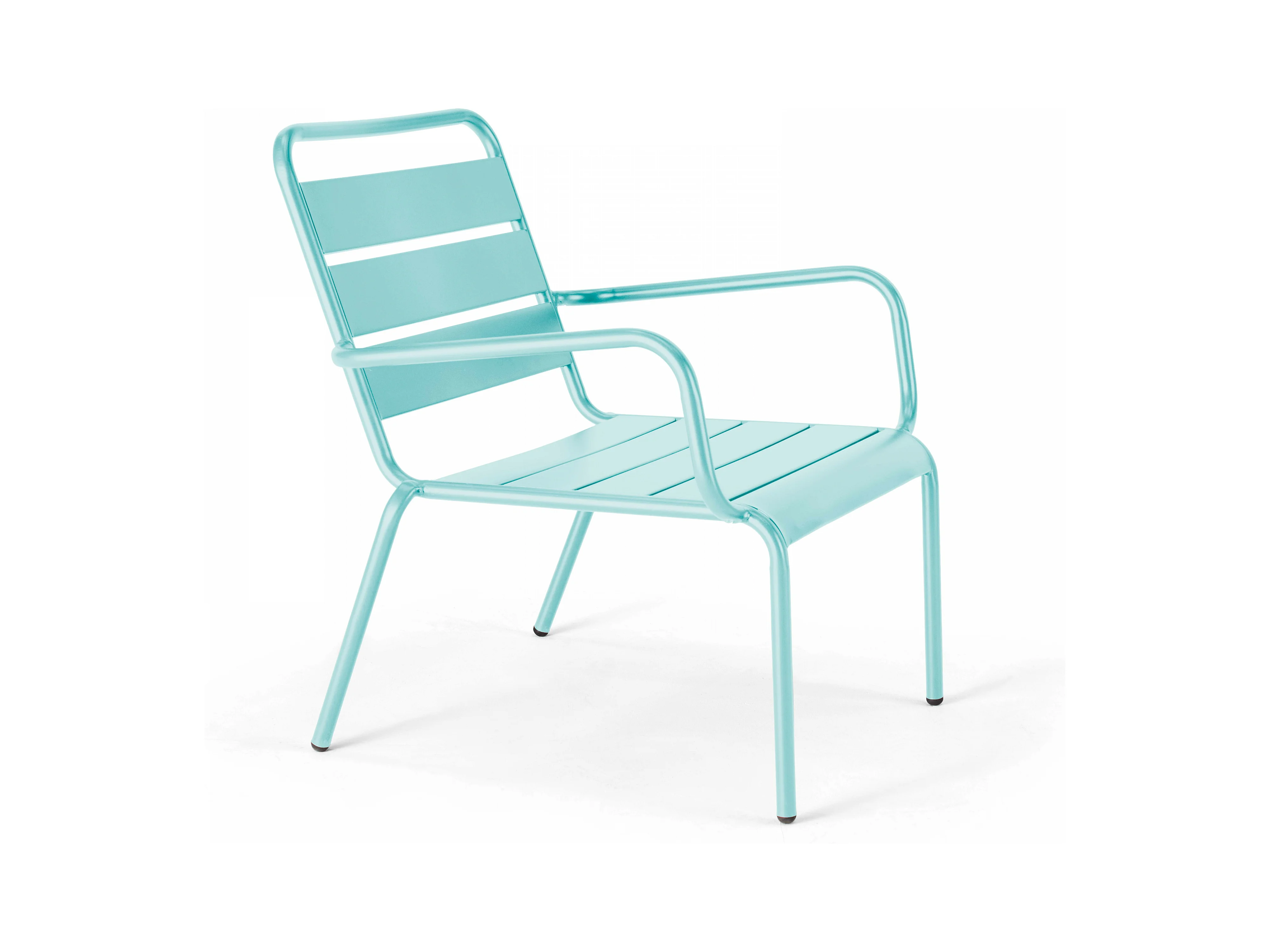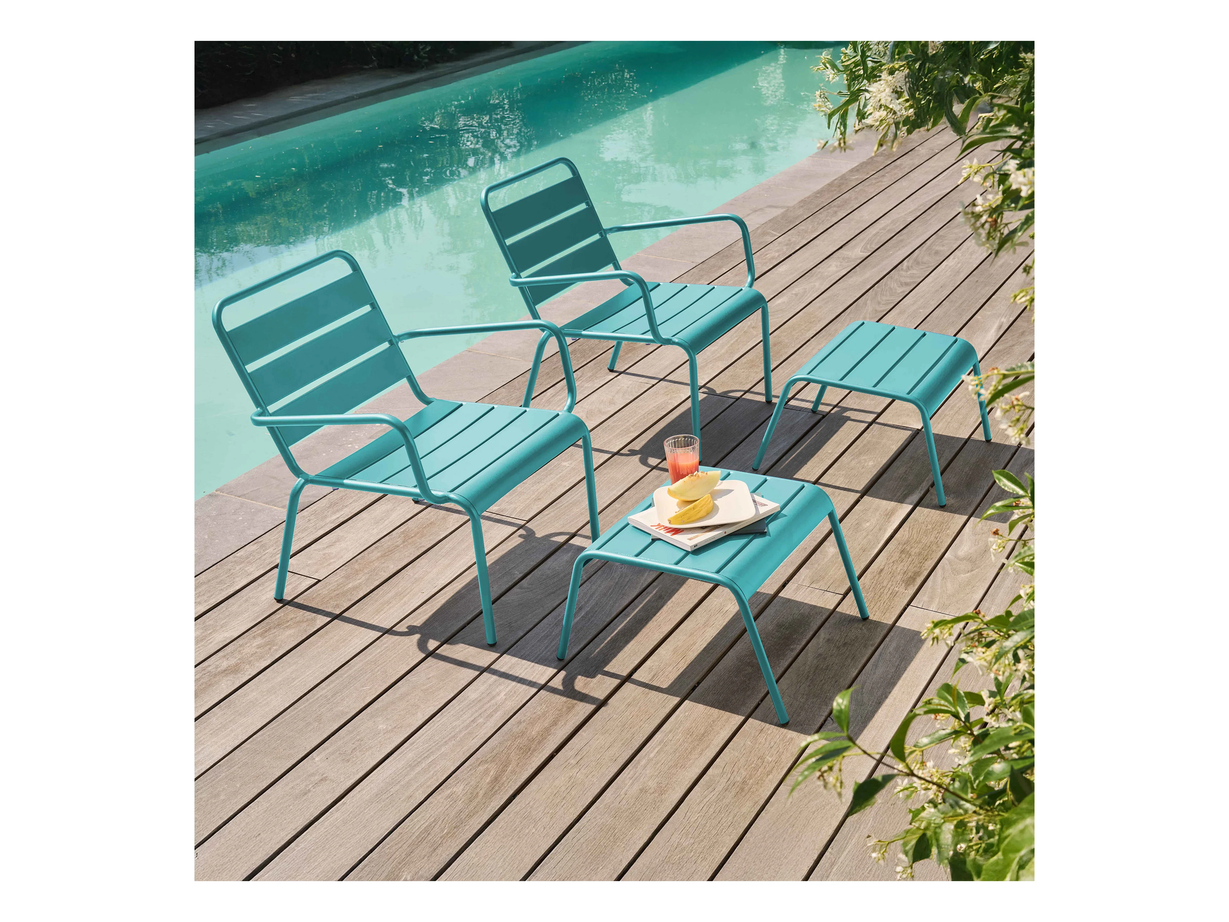 Lot de 2 fauteuils relax avec repose-pieds en métal turquoise - Palavas