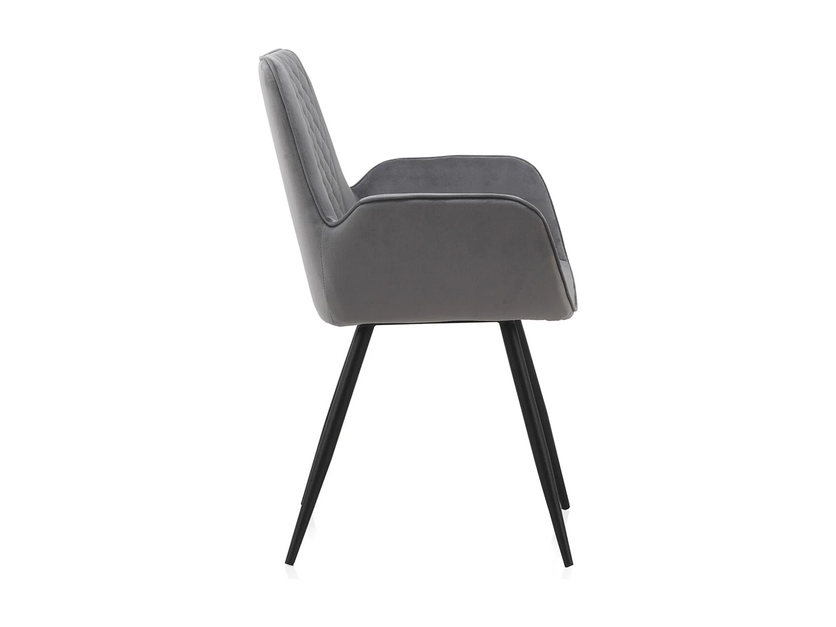 Lot de 2 fauteuils rembourrés en velours gris avec pieds métalliques noirs