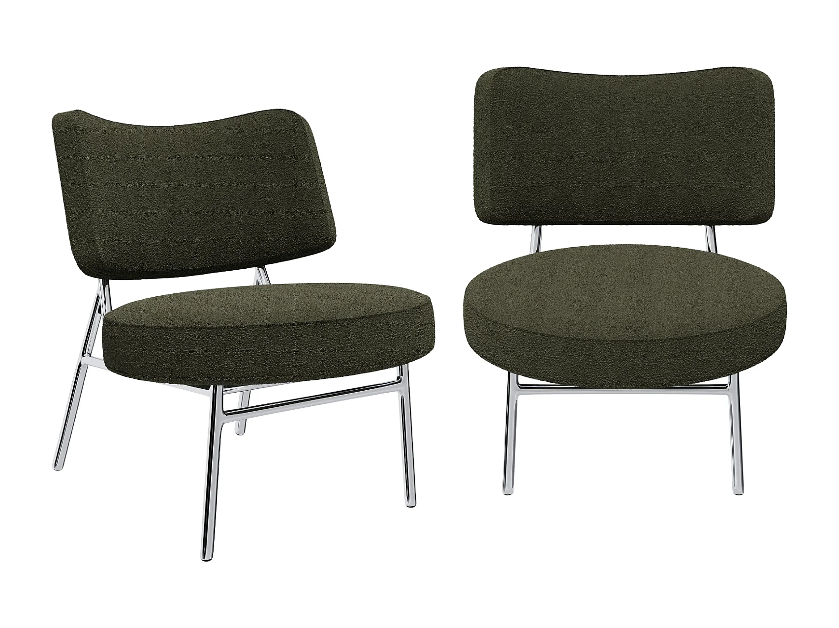Lot de 2 fauteuils tissu bouclette kaki IGGY