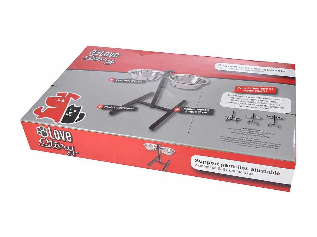 Gamelle double chien porte-gamelles surélevé hauteur réglable 2 gamelles acier inox. incluses métal noir