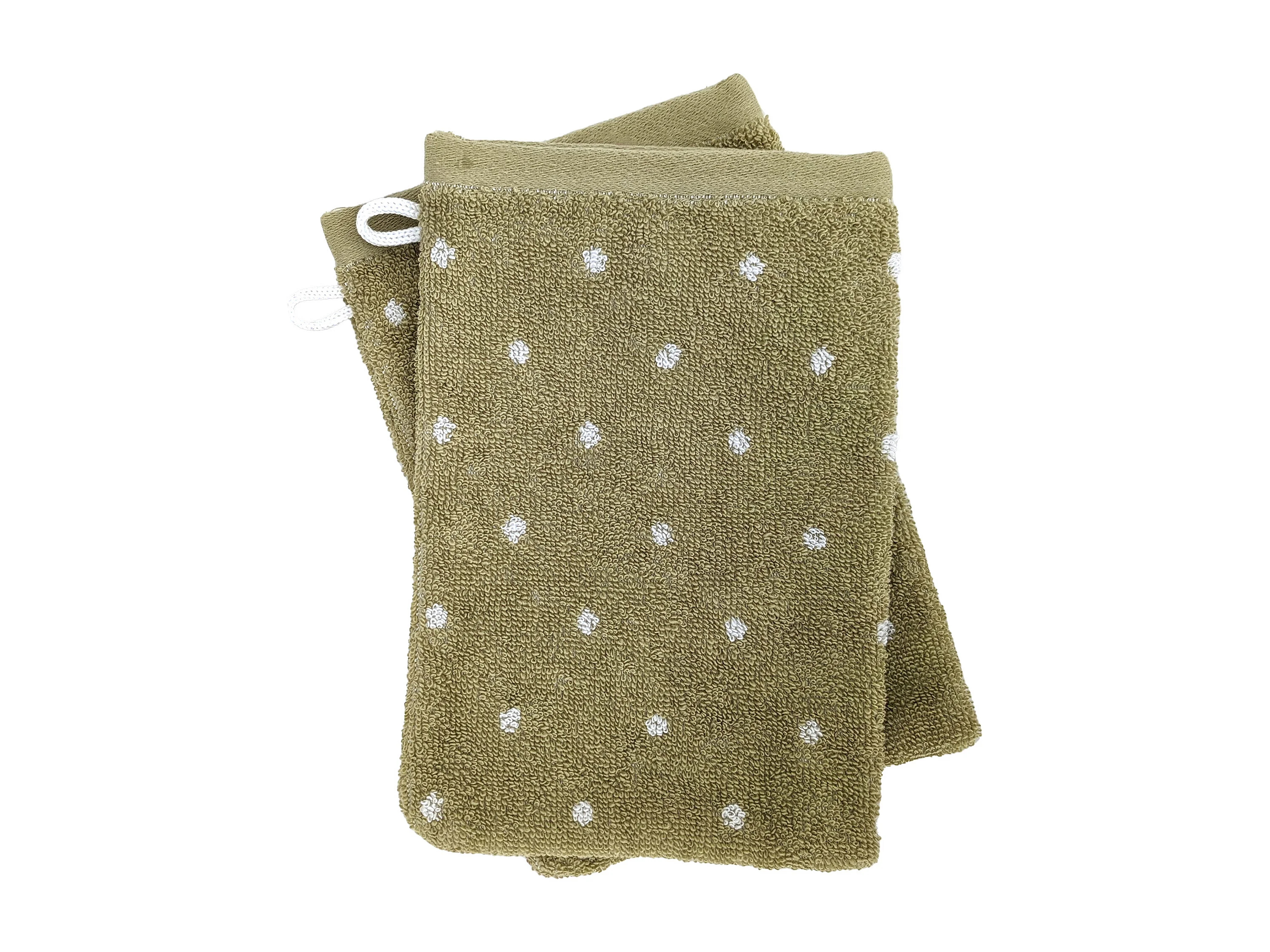Lot de 2 gants de toilette 16x21 cm EFFICIENCE DOTS vert olive
