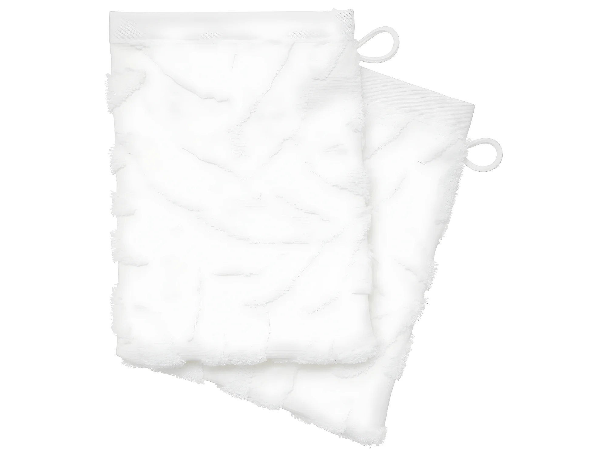 Lot de 2 Gants de toilette en Coton Blanc tissu Jacquard 15 x 21 cm