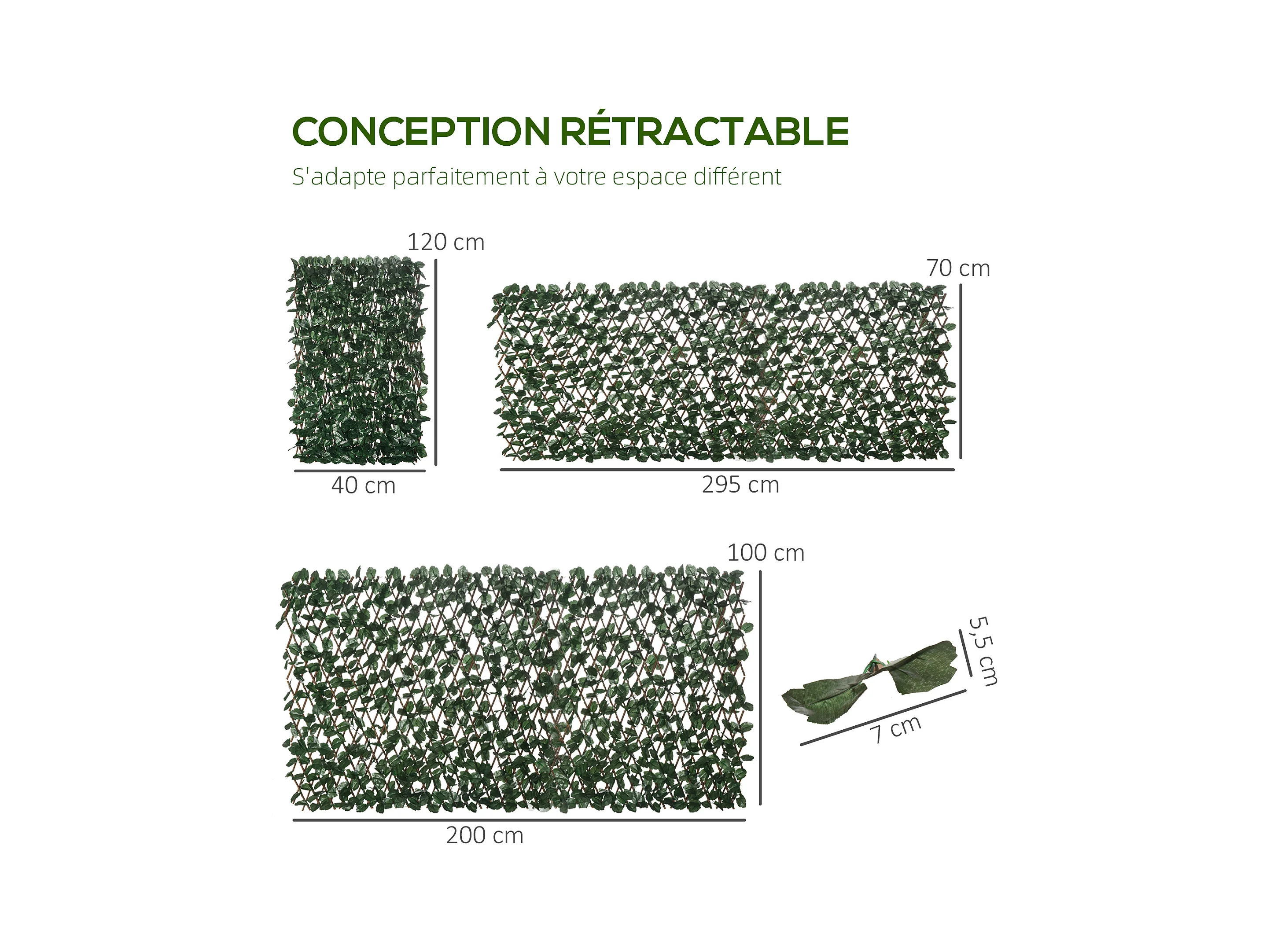 Lot de 2 haies artificielles feuilles de lierre - treillis extensible - brise-vue canisse végétale feuillage réaliste osier polyester