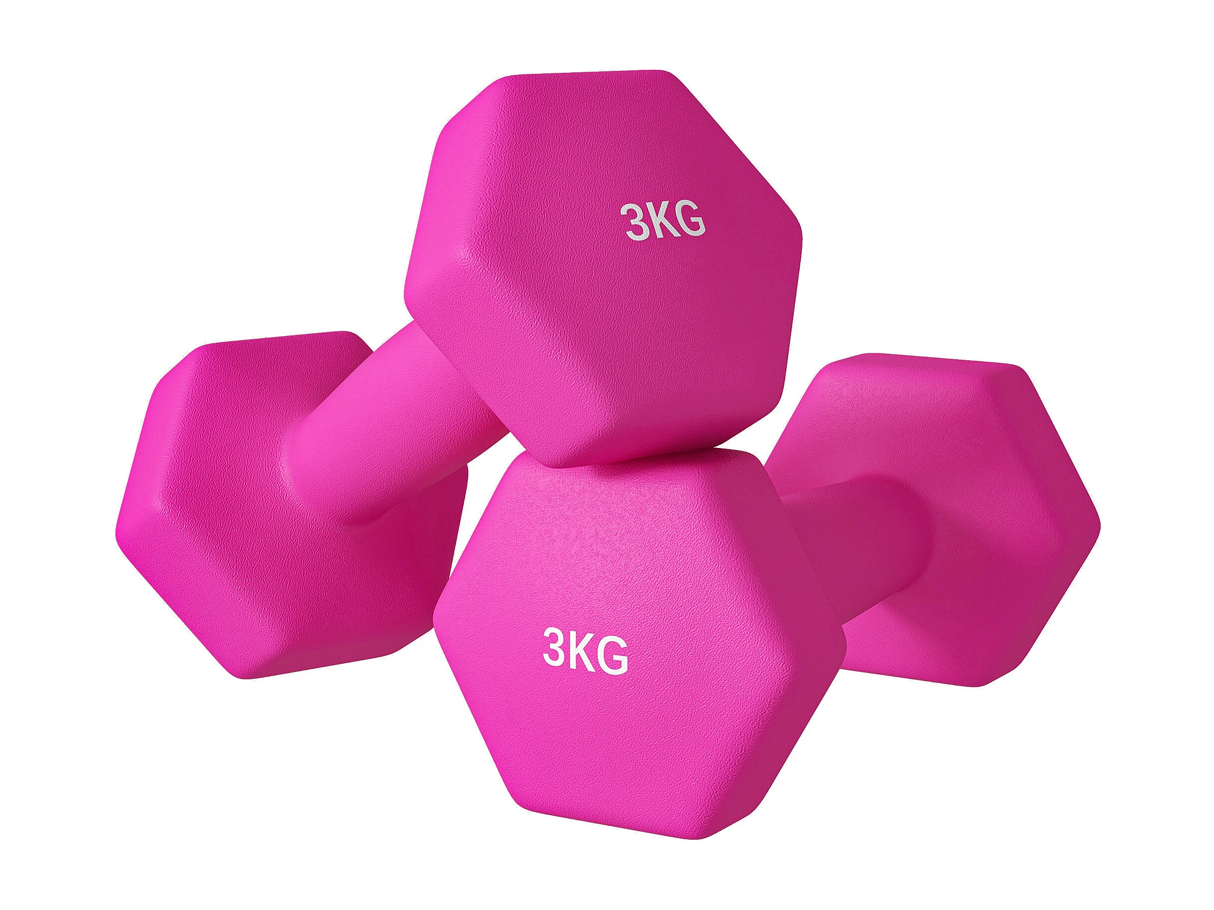 Lot de 2 haltères hexagonales 2 x 3 Kg - poignée antidérapante - métal PVC rose