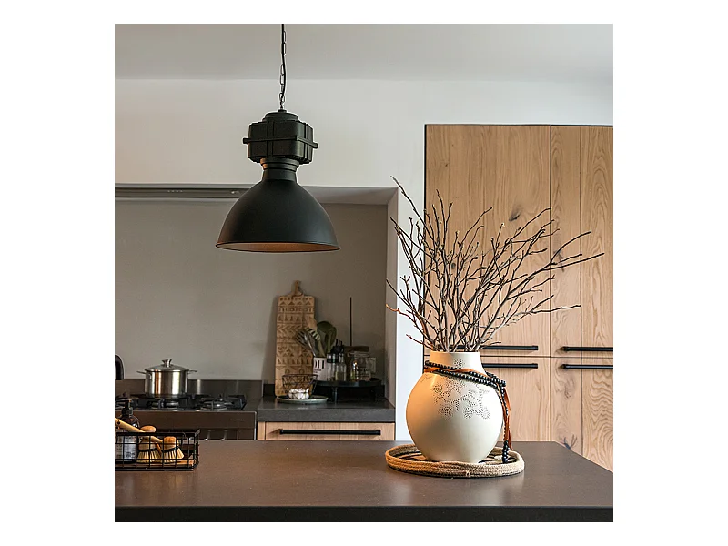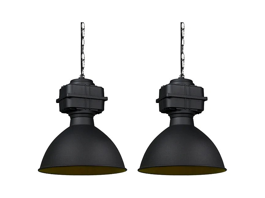 Lot de 2 lampes à suspension industrielles petit noir mat - Sicko