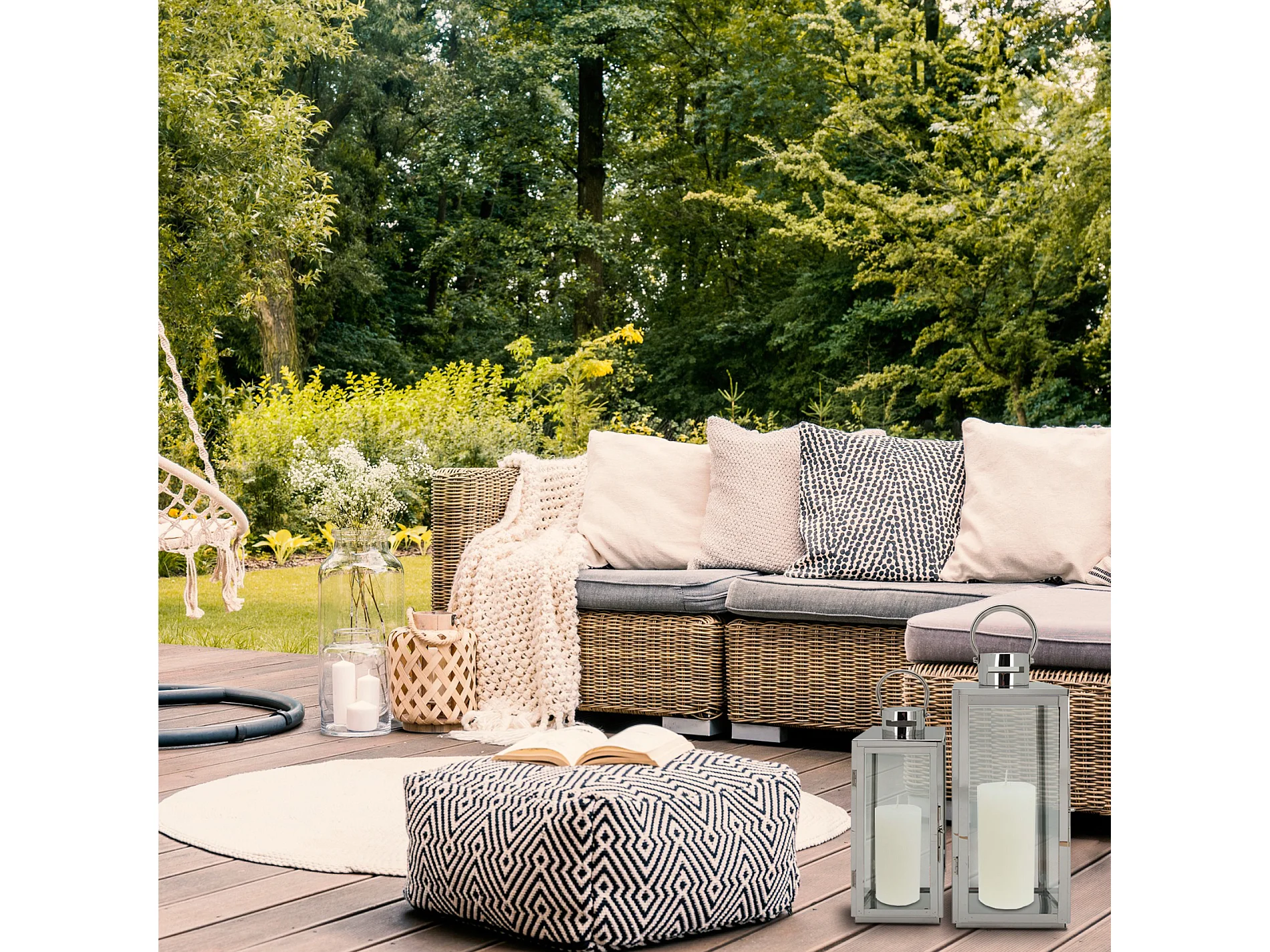 Lot de 2 Lanternes en Acier Pvc Gris Argenté pour Intérieur Extérieur