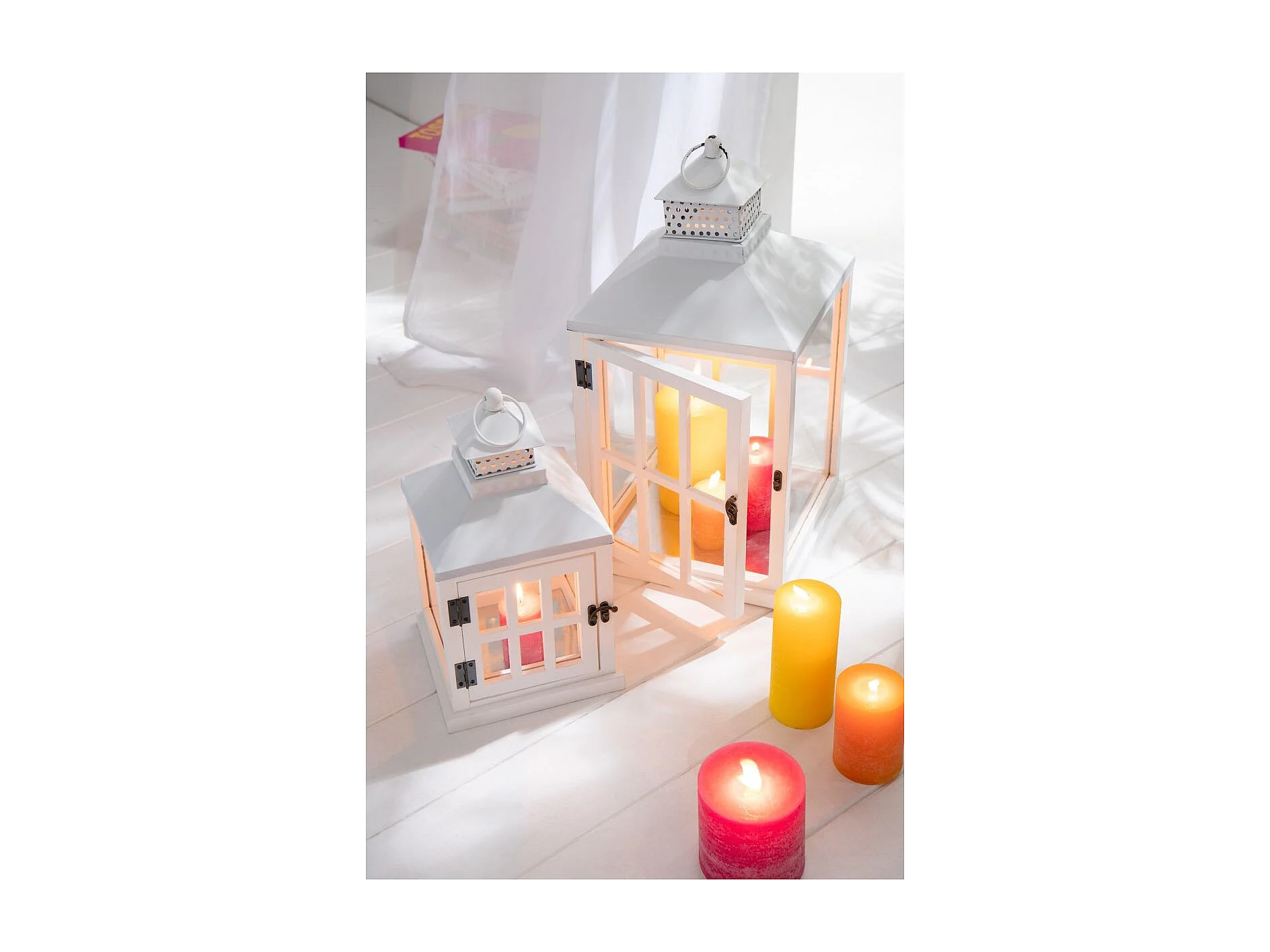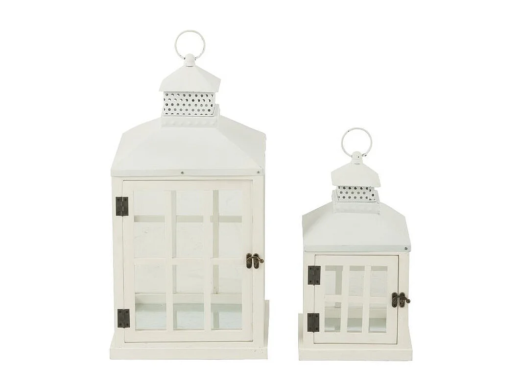 Lot de 2 Lanternes Maisons en Bois "Cocoon" 52cm Blanc