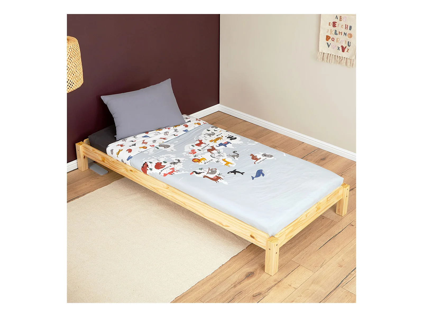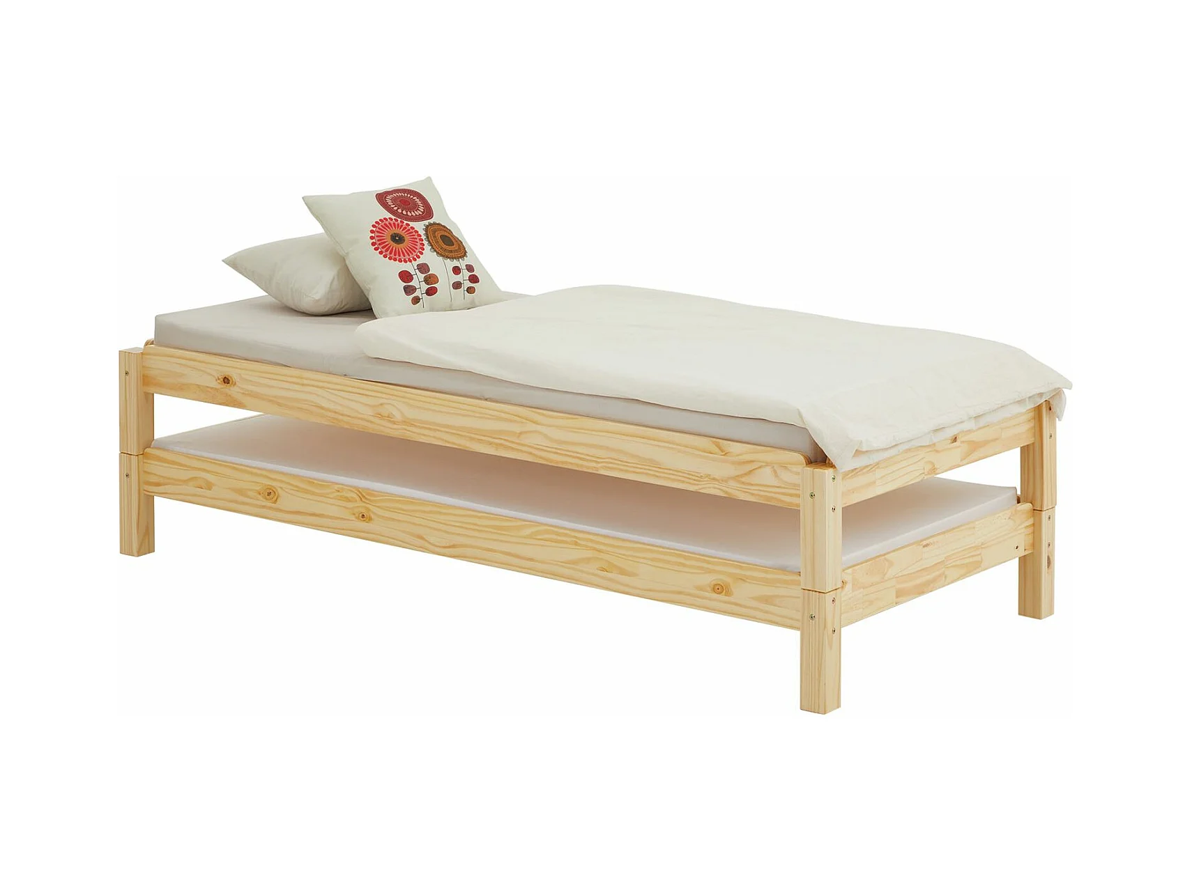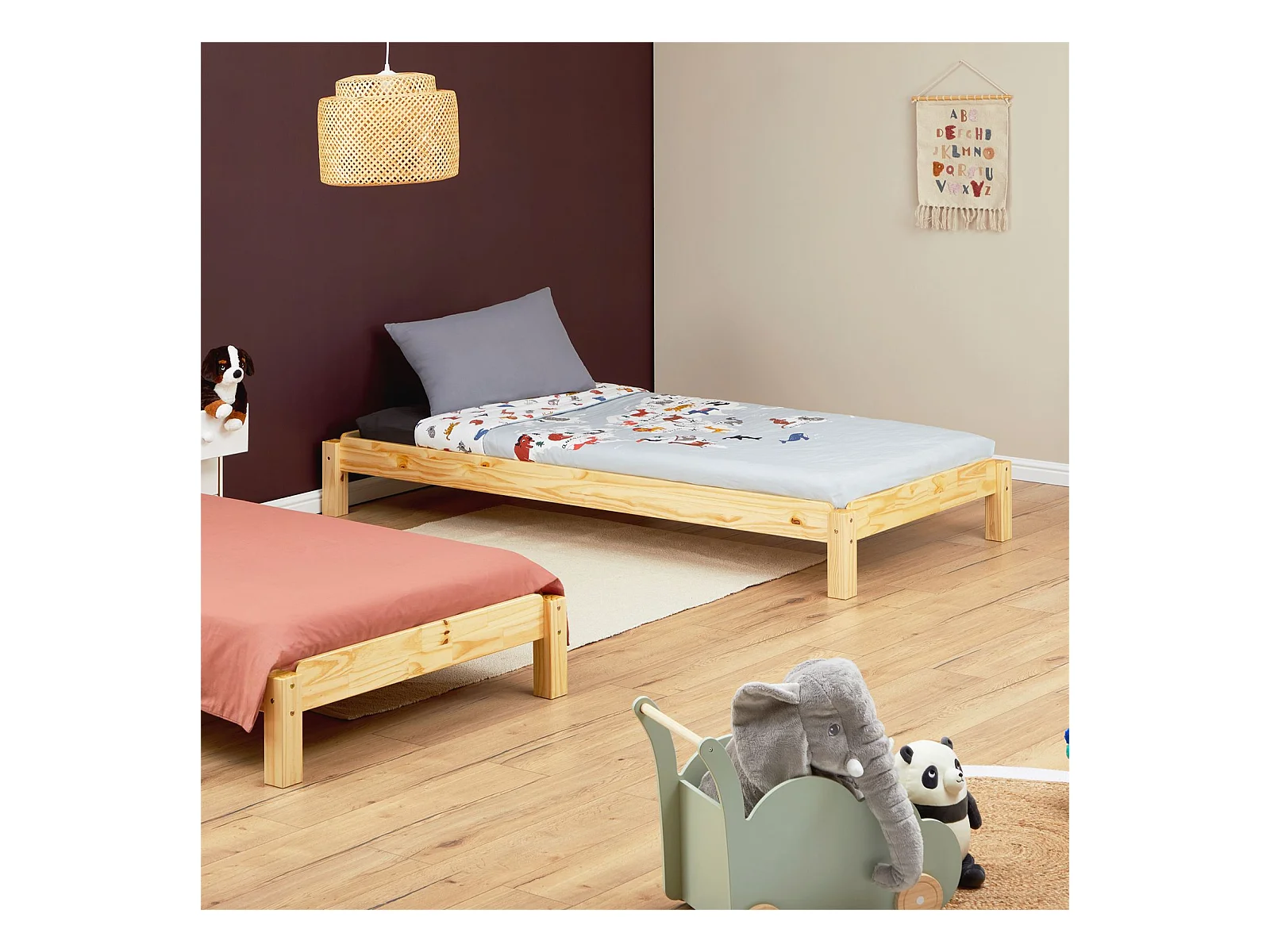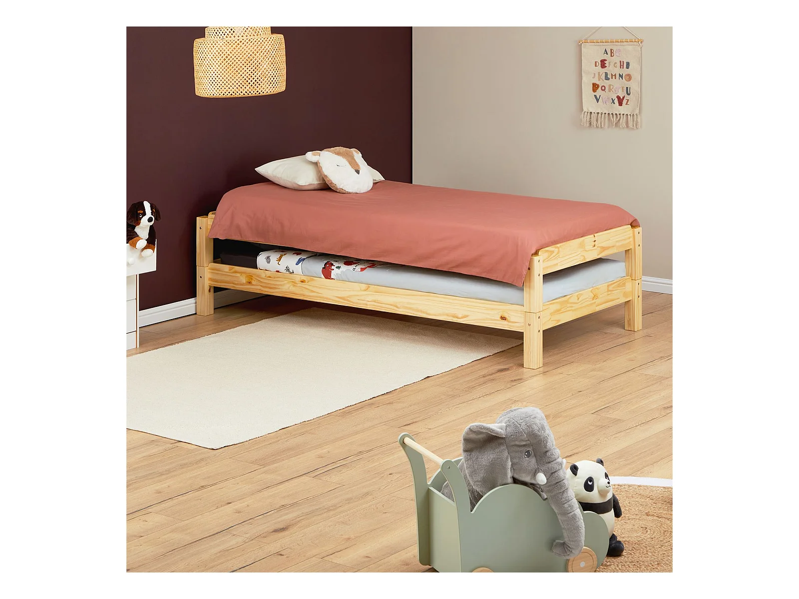 Lot de 2 lits superposables RINO 90 x 200 cm, lits simples 1 place, couchage d'appoint, en pin massif vernis naturel
