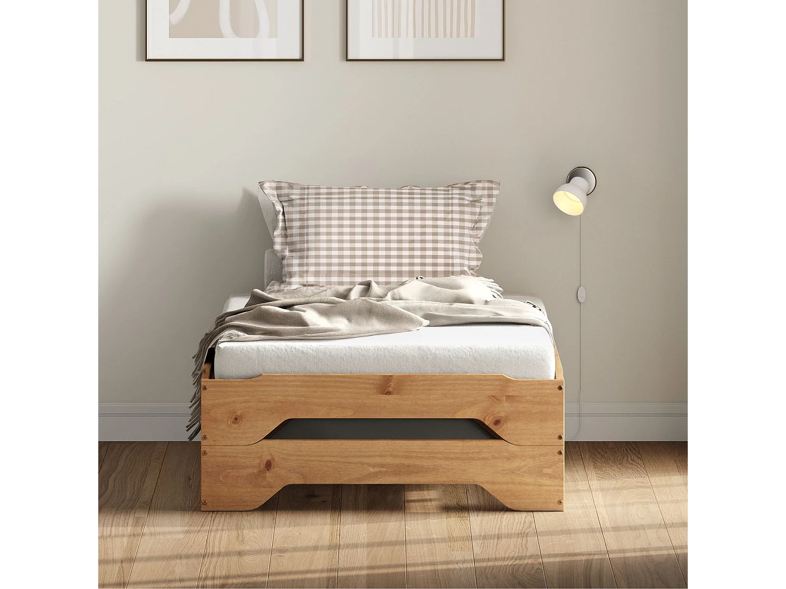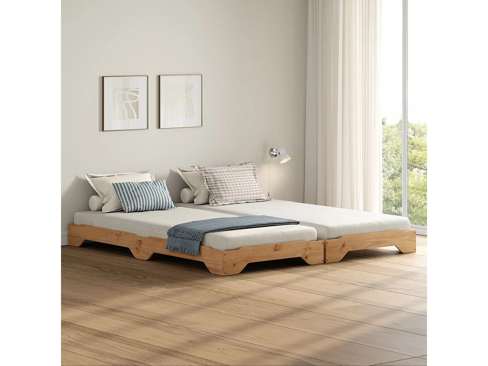 Lot de 2 lits superposables RONNY 90 x 200 cm coloris chêne couchage supplémentaire fonctionnel en pin massif