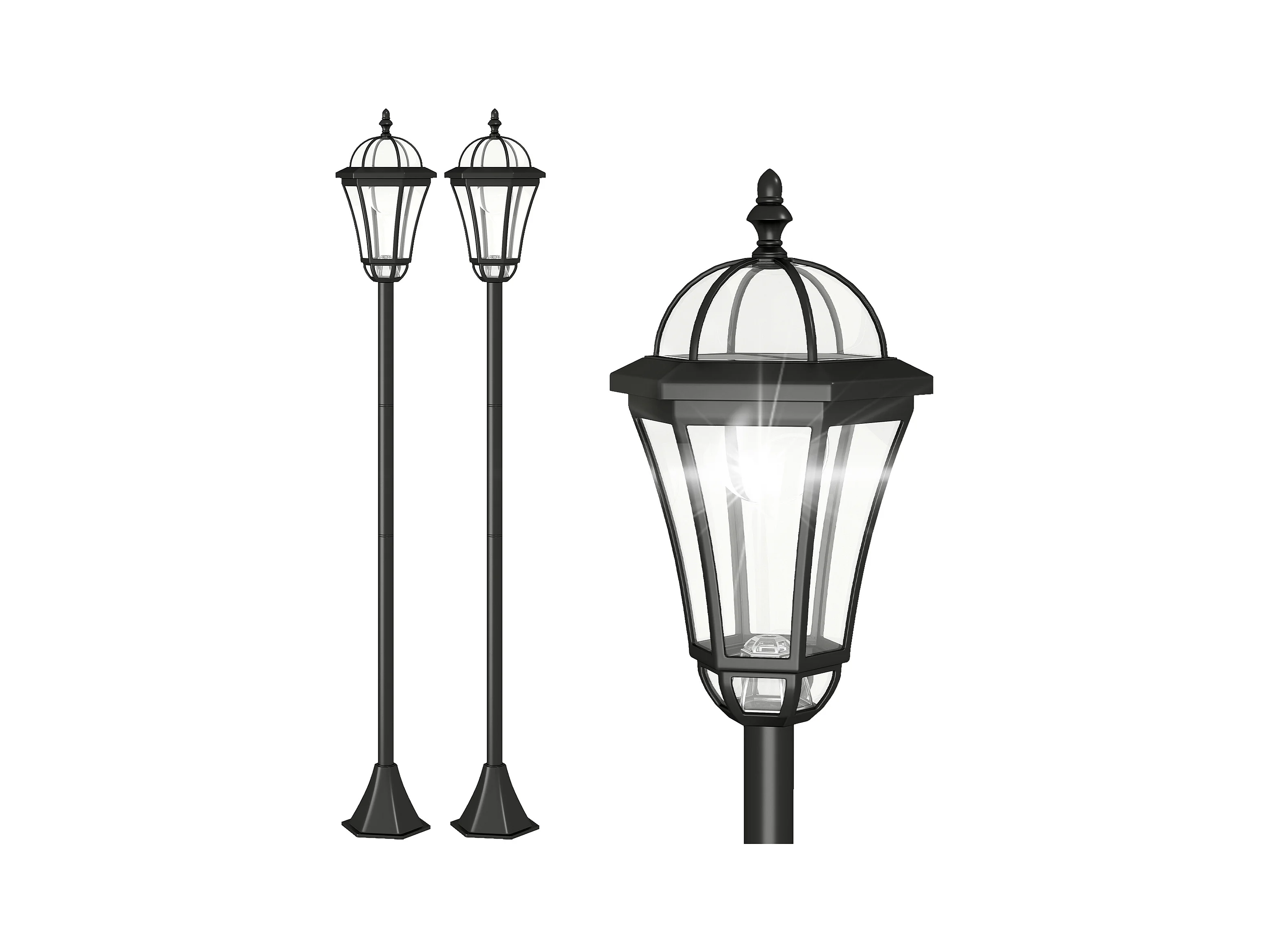 Lot de 2 luminaires extérieurs solaires lampadaires lanternes classiques LED 15 Lm Ø 18,5 x 129H cm noir