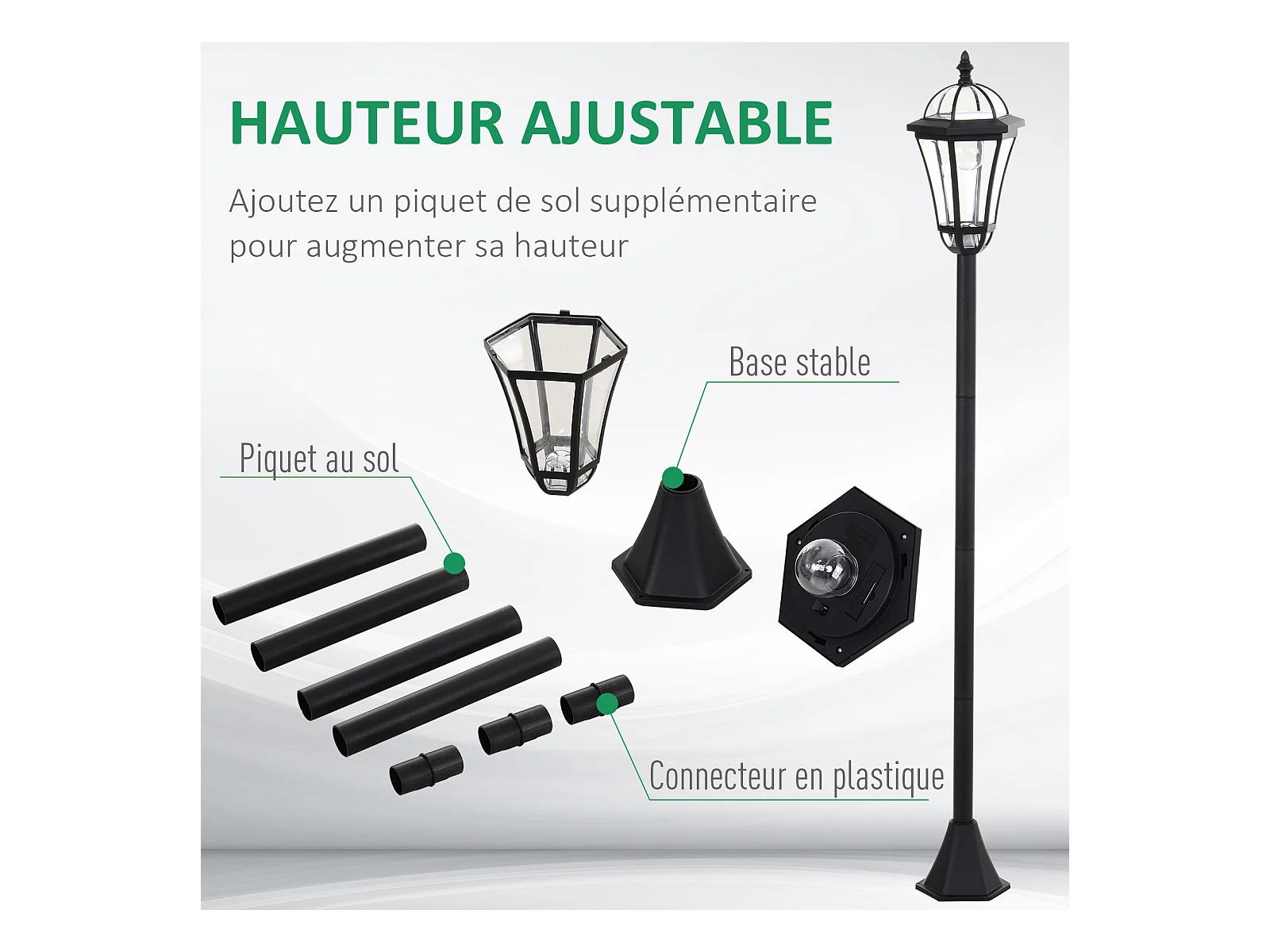 Outsunny Luminaire extérieur solaire lampadaire lanterne classique LED 40 Lm dim. 18L x 18l x 160H cm noir