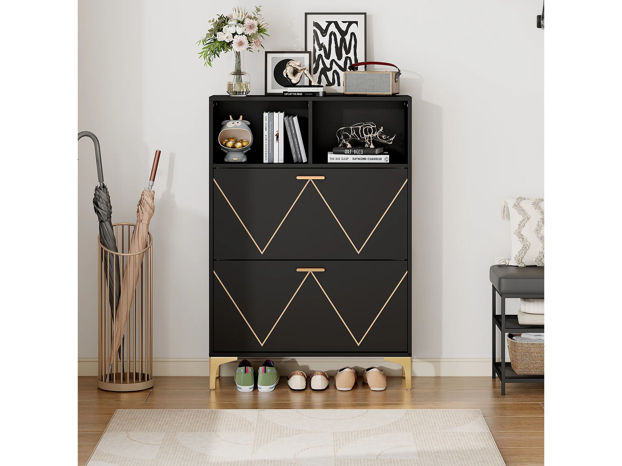 Lot de 2 meuble à chaussures - 2 portes abattantes - pieds en métal - Noir