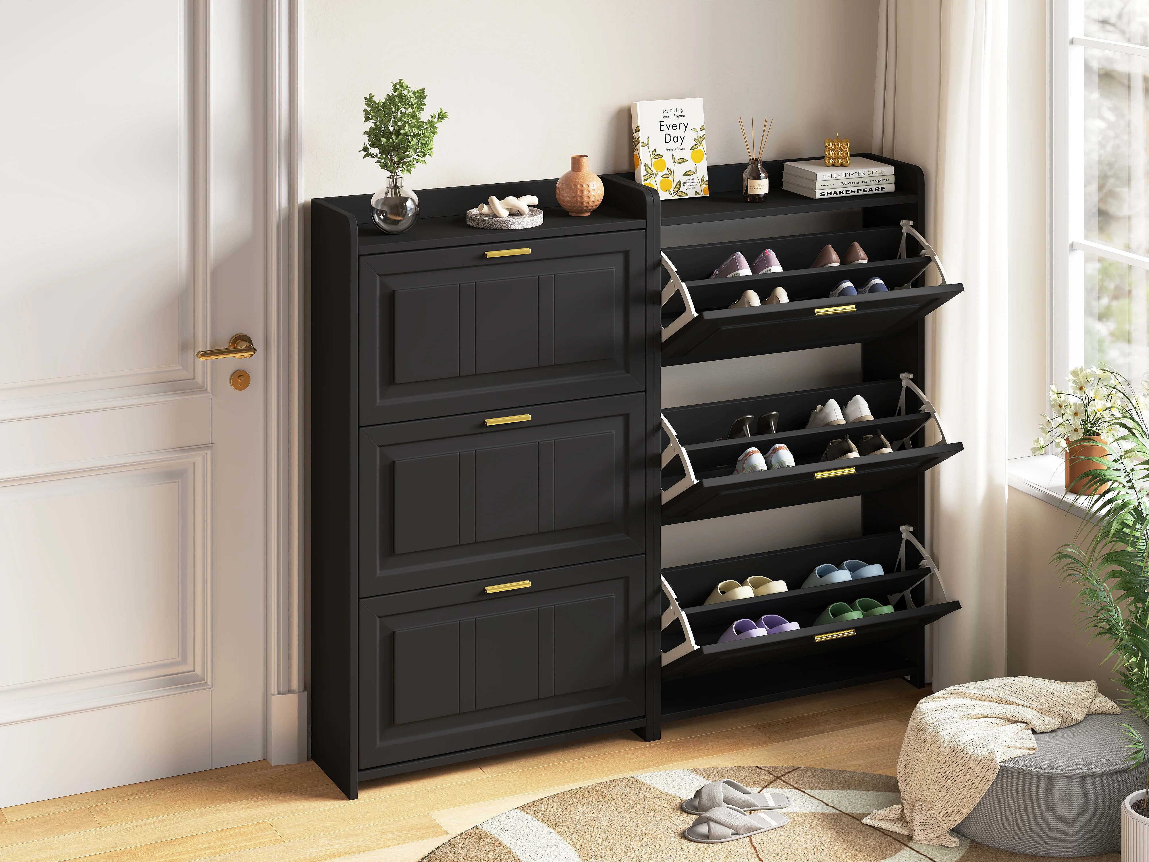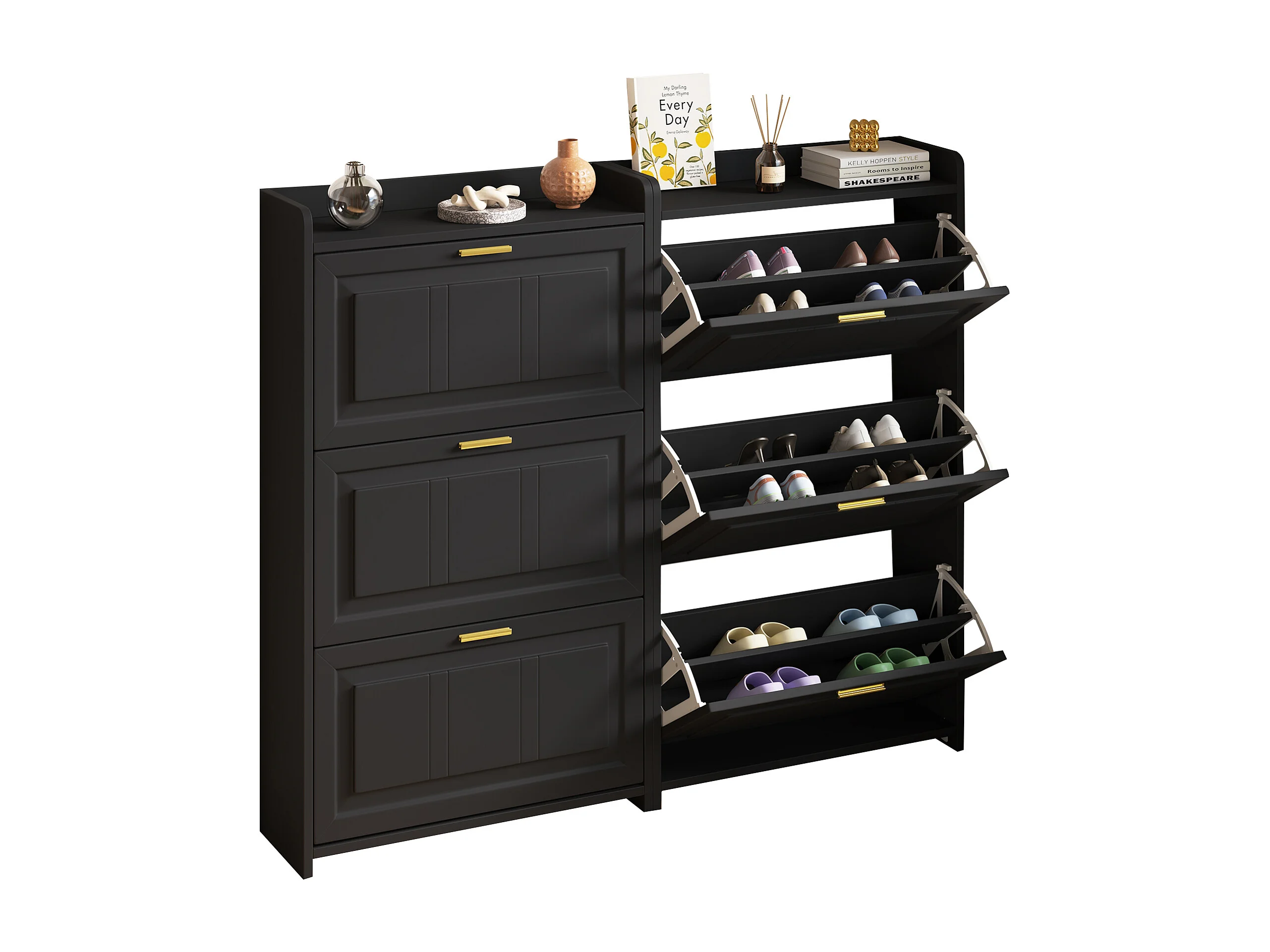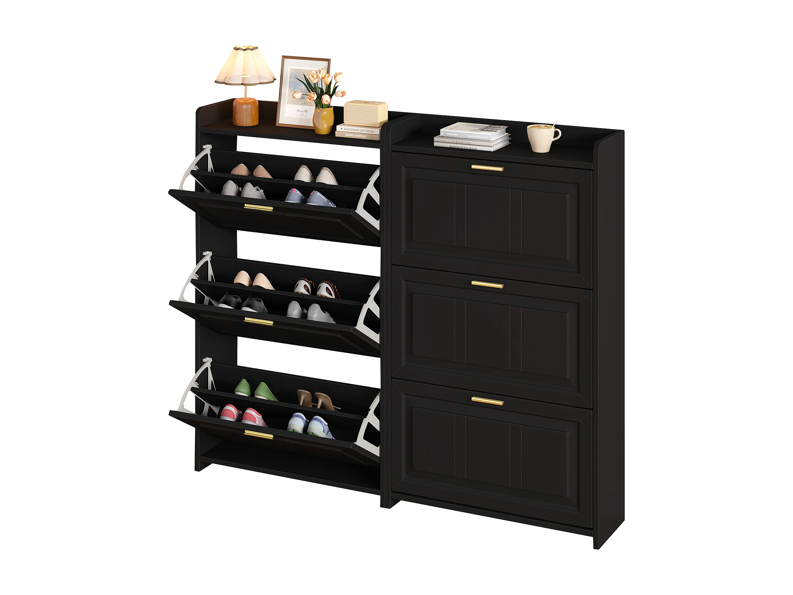 Lot de 2 meuble à chaussures 70 x 24 x 120 cm avec 3 portes - Noir