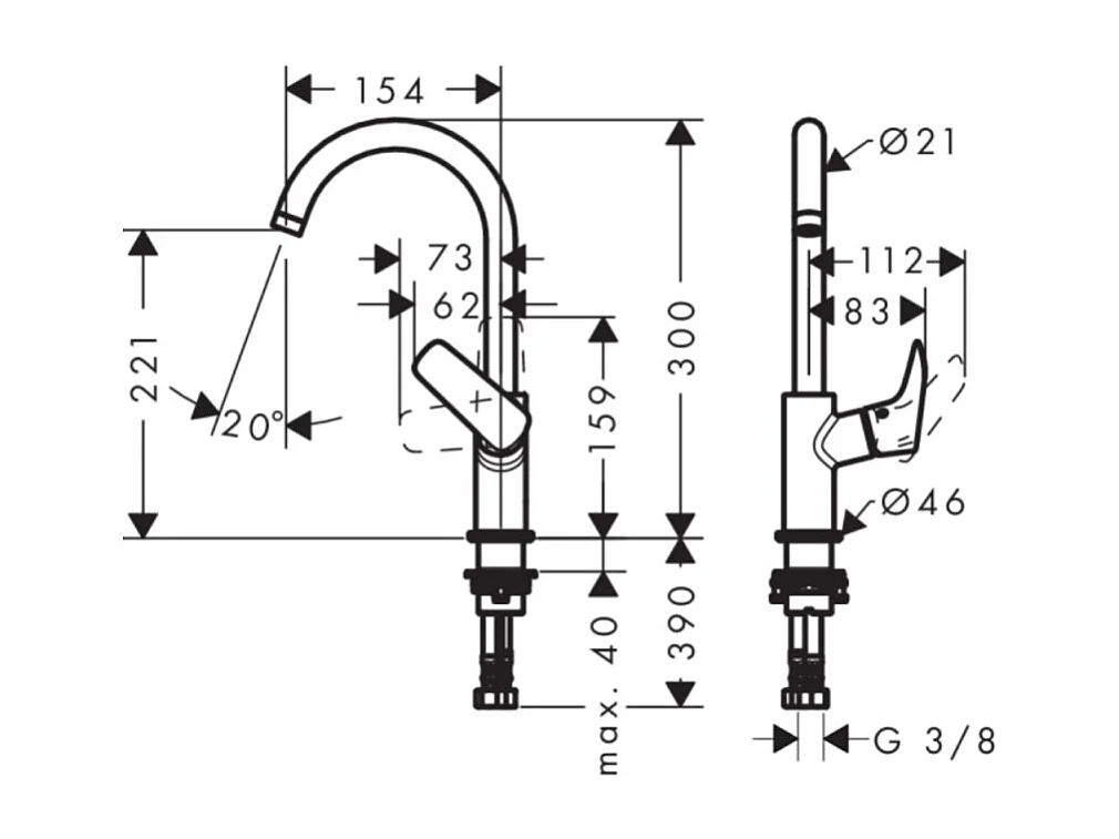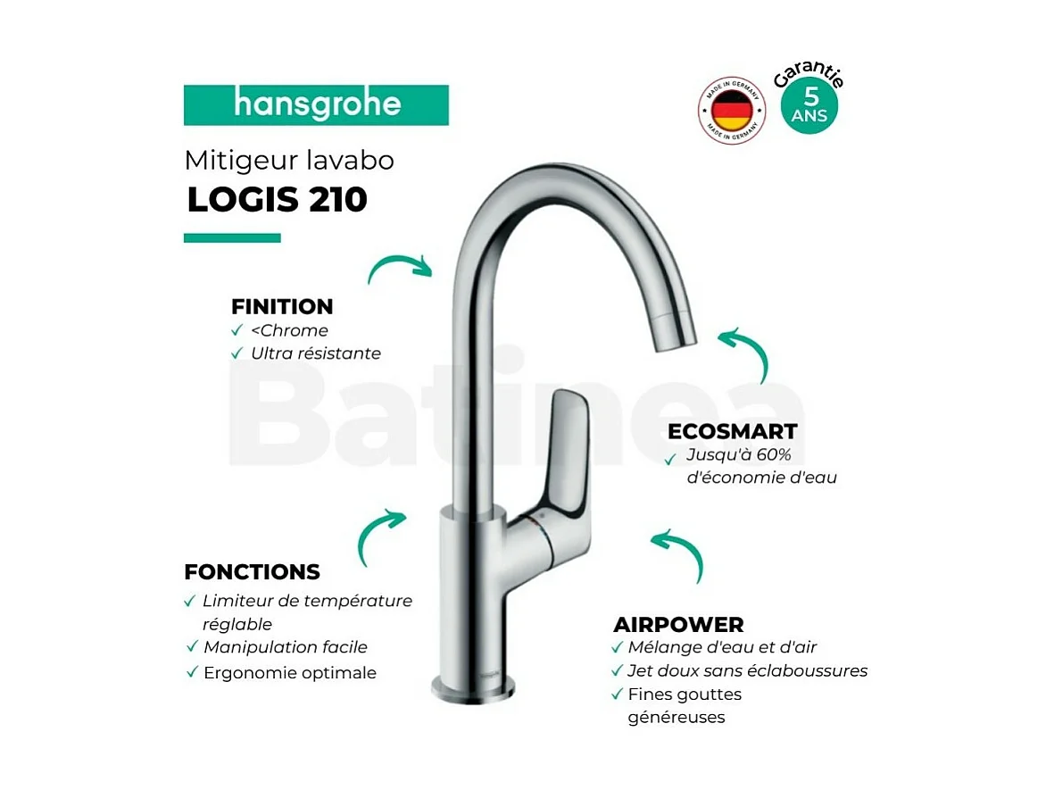 Lot de 2 mitigeurs de lavabo HANSGROHE Logis 210, orientable