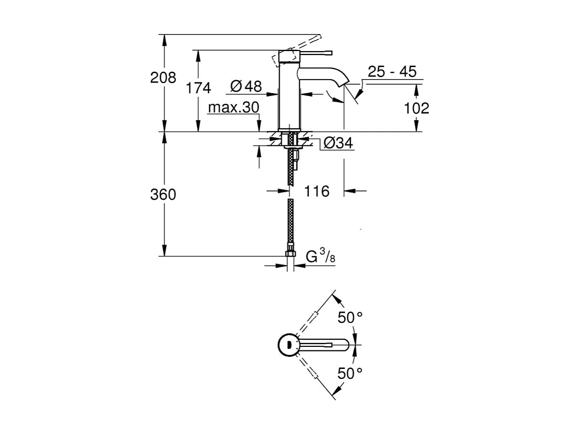 Lot de 2 mitigeurs lavabo GROHE Essence AquaGuide S sans vidage