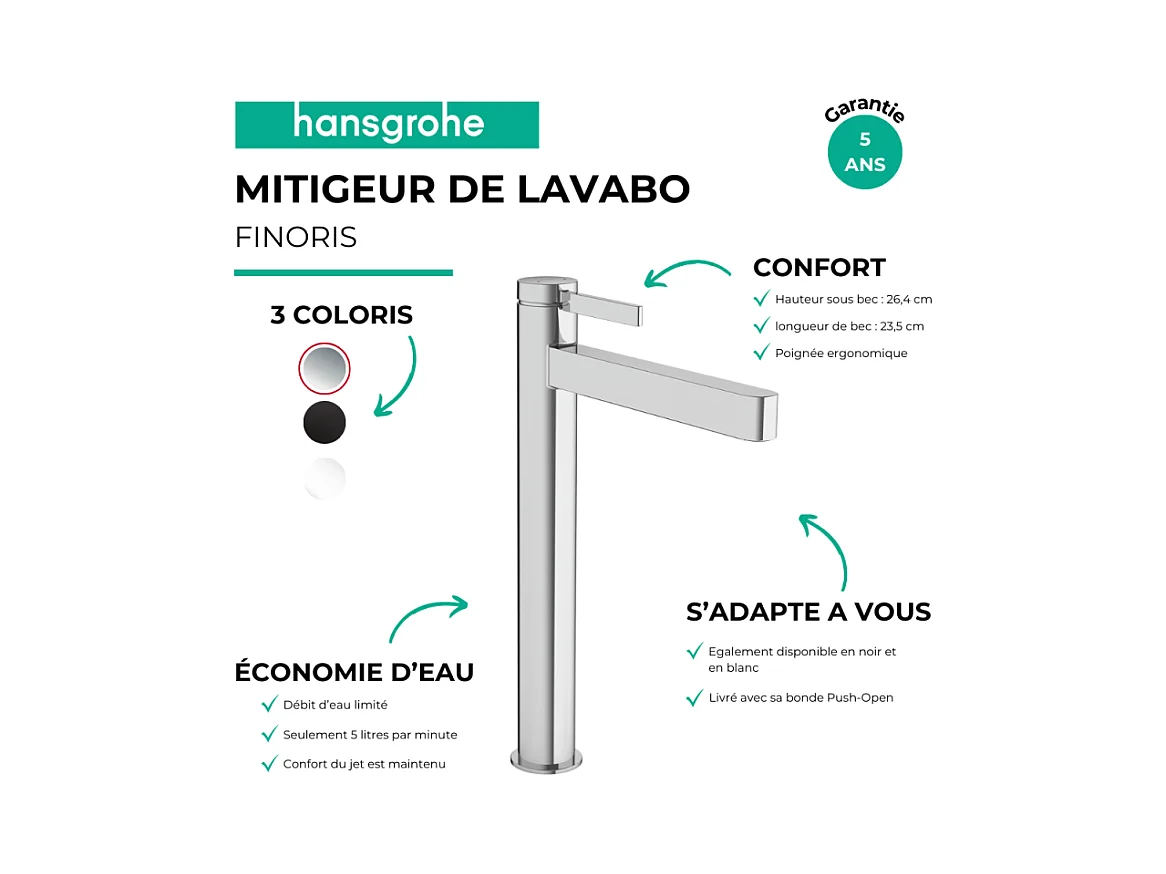 Lot de 2 mitigeurs lavabo HANSGROHE Finoris 260 + bonde Push-Open Chromé